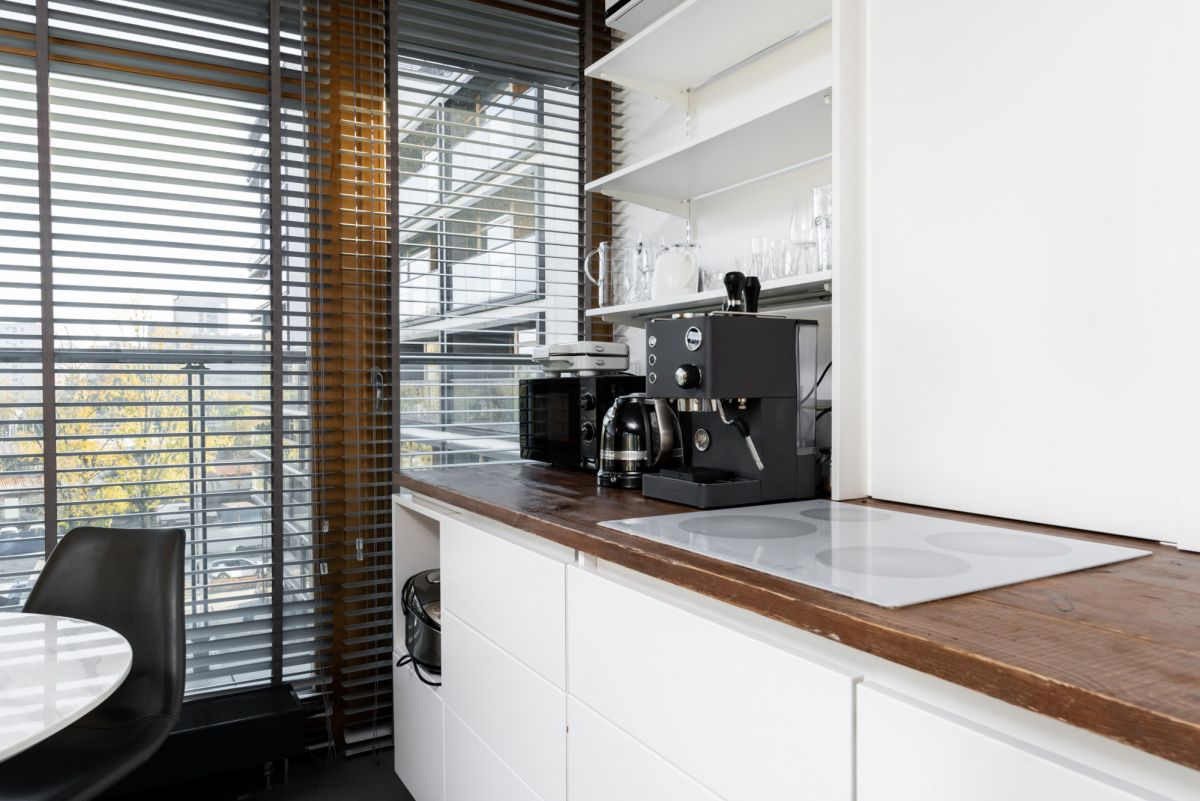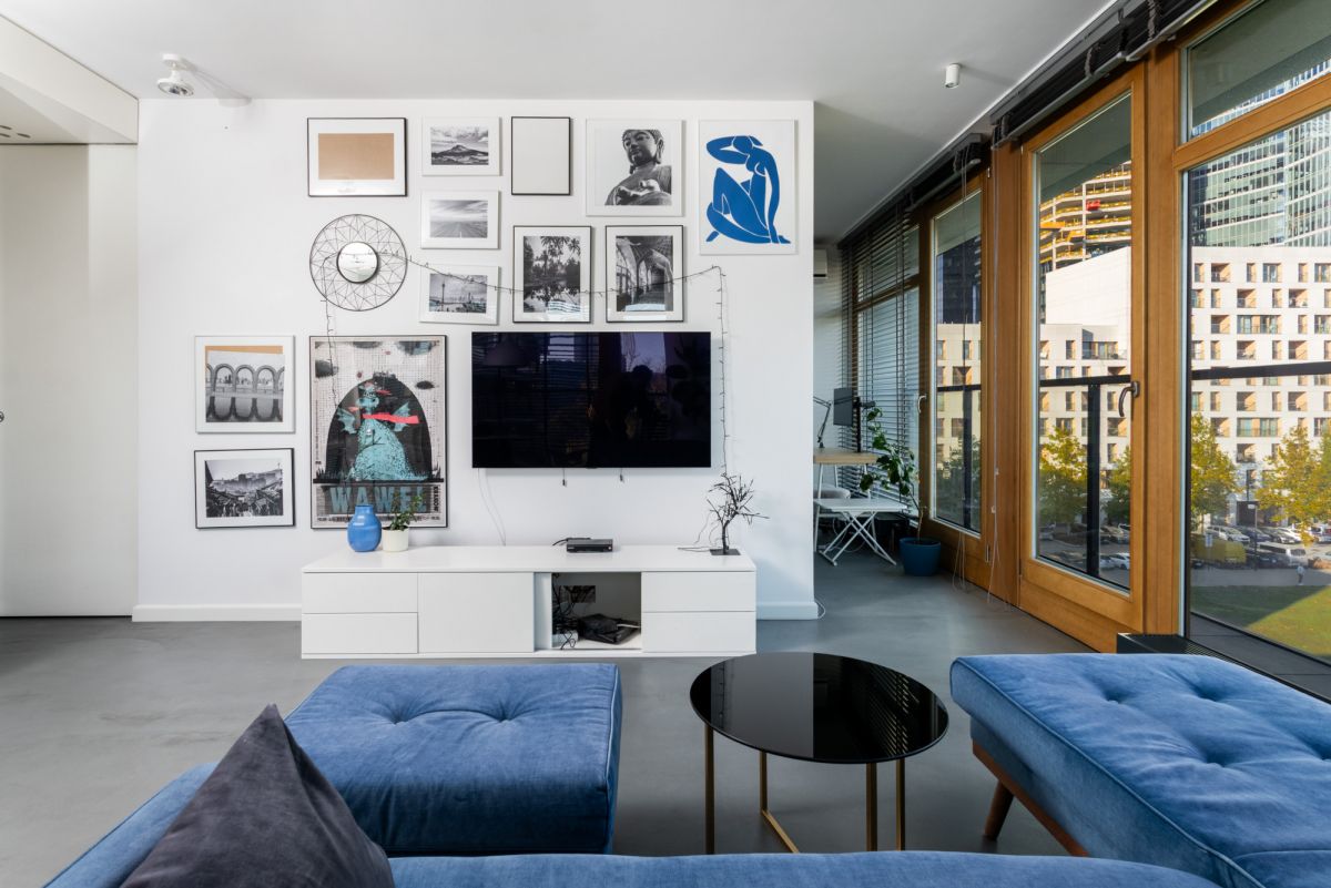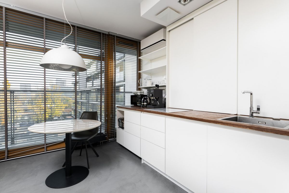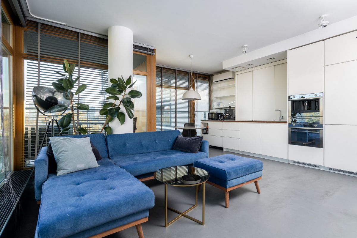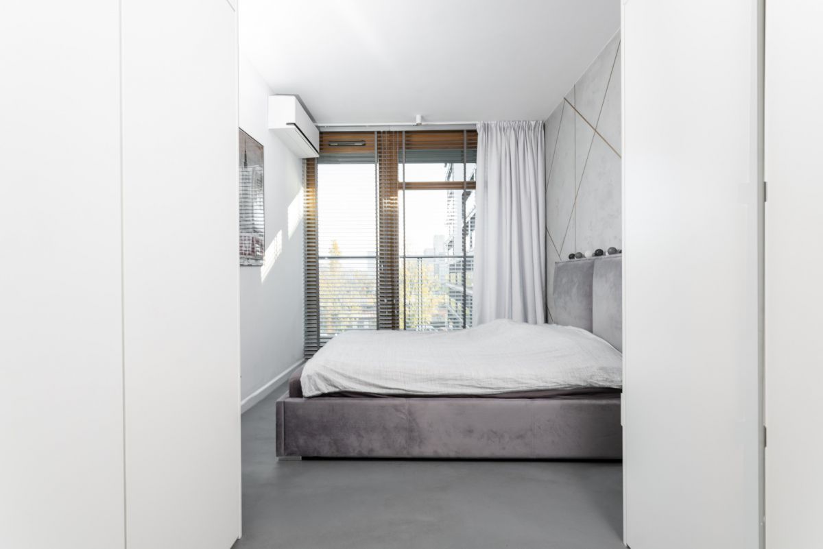 Przestronne wnętrza wypełnia naturalne światło dzięki dużym oknom, które nadają mieszkaniu wyjątkowego charakteru. Salon połączony z kuchnią tworzy elegancką i otwartą przestrzeń dzienną, idealną zarówno do relaksu, jak i przyjmowania gości. Z salonu wyjście na balkon, z którego roztacza się panoramiczny widok na Warszawę, pozwala cieszyć się świeżym powietrzem i spokojem w samym sercu miasta.