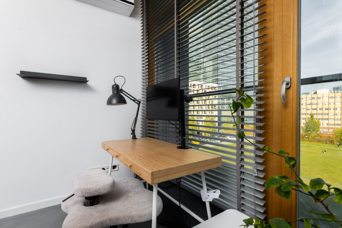 Gabinet stanowi idealną przestrzeń do pracy lub nauki, łącząc funkcjonalność z estetyką - dzięki dużym oknom wnętrze jest jasne i sprzyja koncentracji, a pojemne szafy i praktyczne rozwiązania zapewniają maksymalny komfort użytkowania.