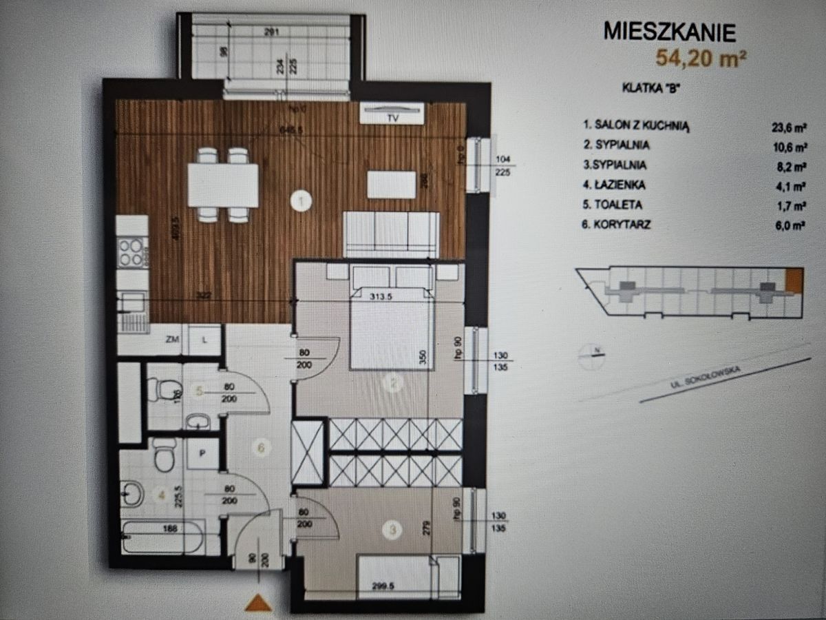 Jasne i funkcjonalne 3-pokojowe mieszkanie o powierzchni 54 m², położone na 1 piętrze w bloku przy ul. Sokołowskiej 11.