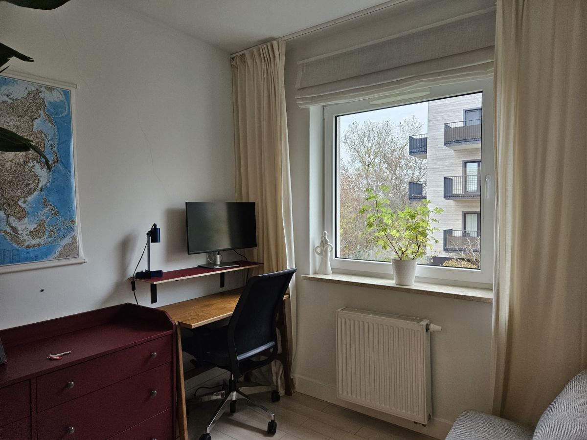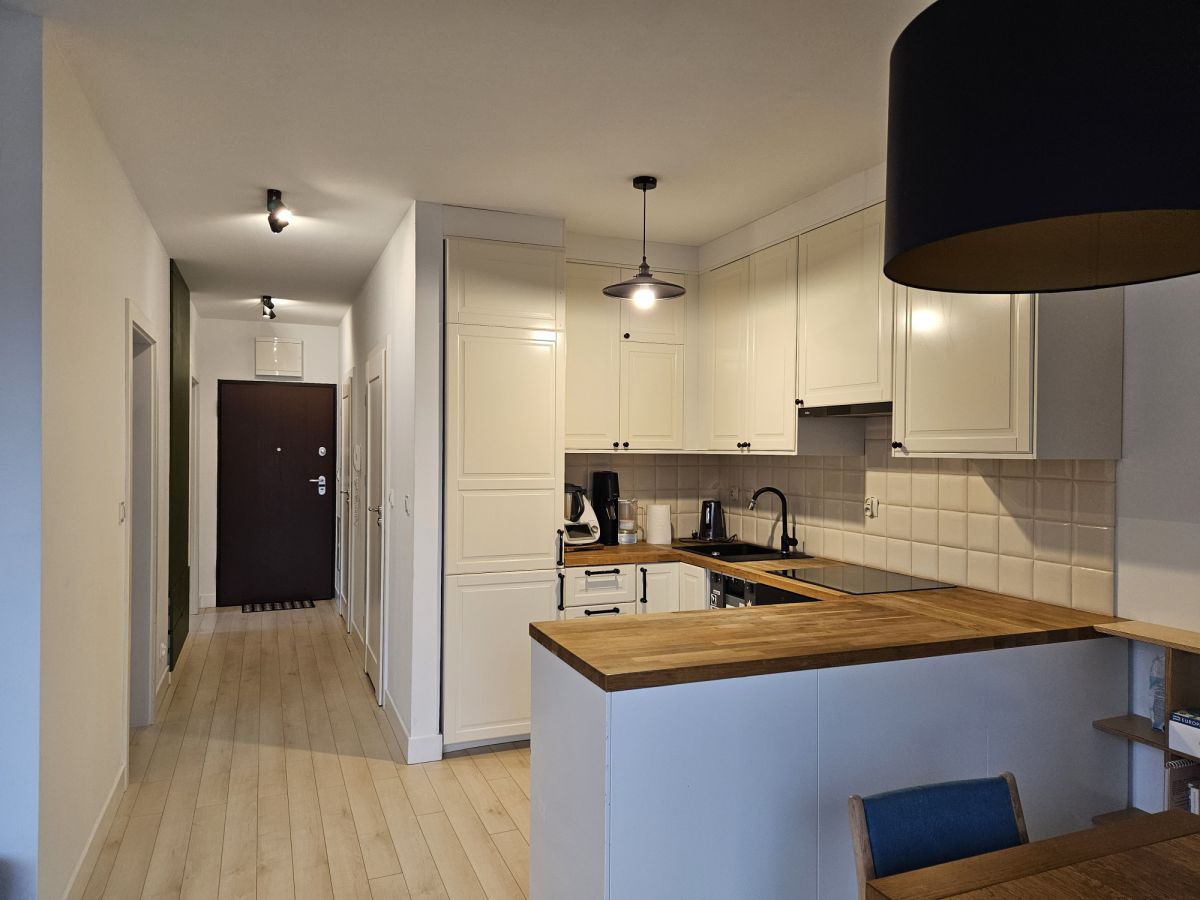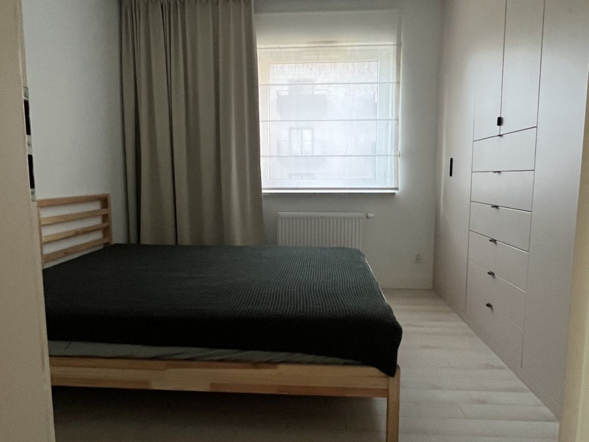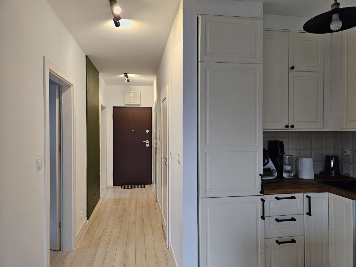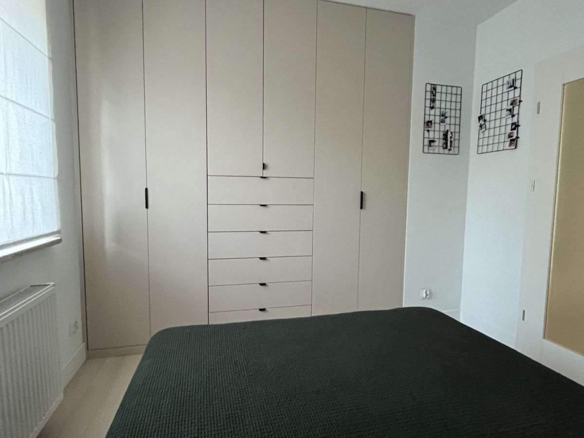 Przestronny pokój dzienny połączony z aneksem kuchennym. Przytulna sypialnia z wygodnym dwuosobowym łożem i duża szafa w zabudowie. Druga duża sypialnia lub pokój do pracy - do własnej aranżacji. Na podłodze panele winylowe. Łazienka z wanną. Jasny i duży przedpokój z pojemną szafą.