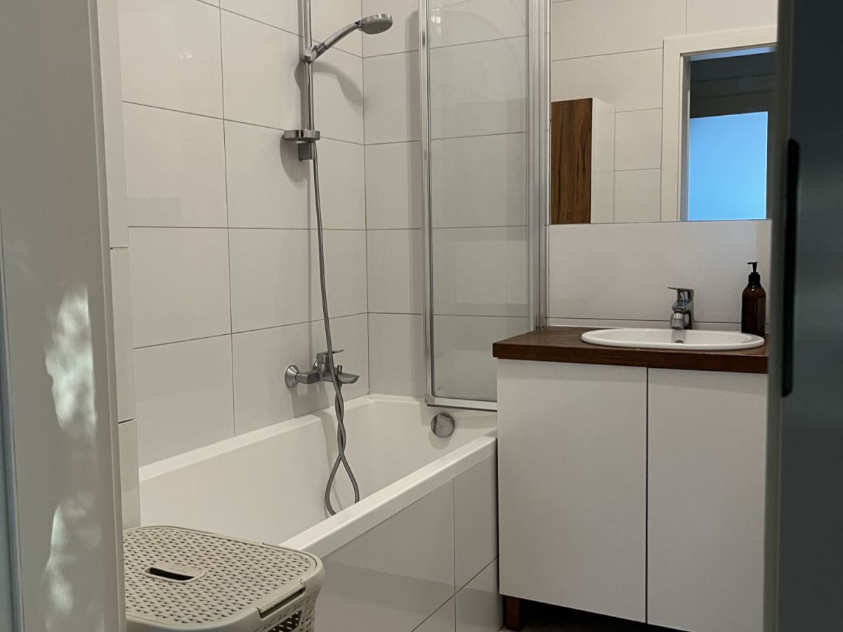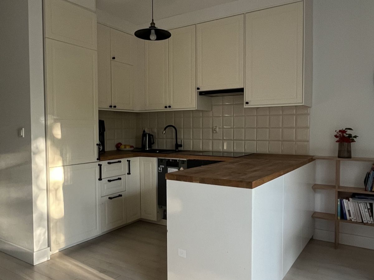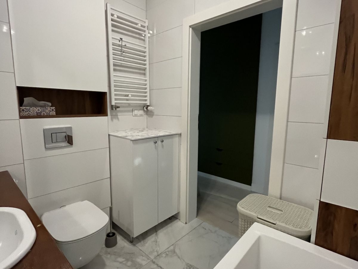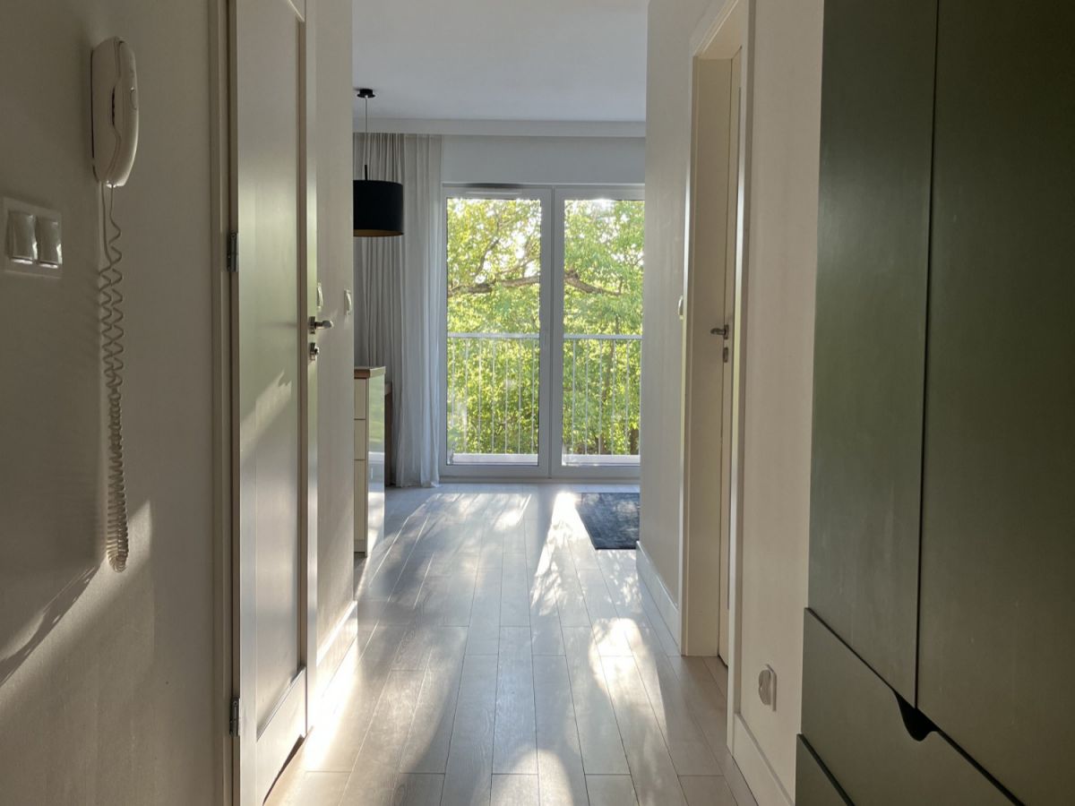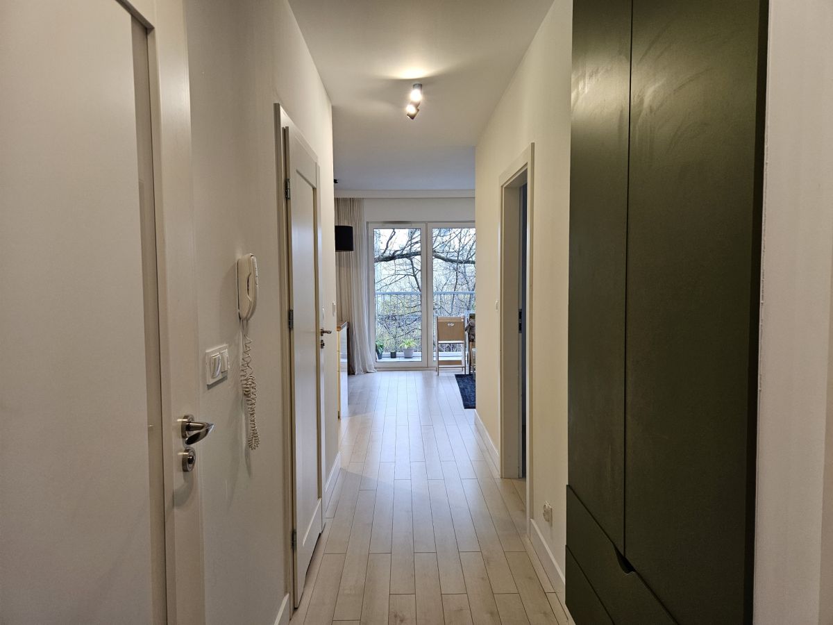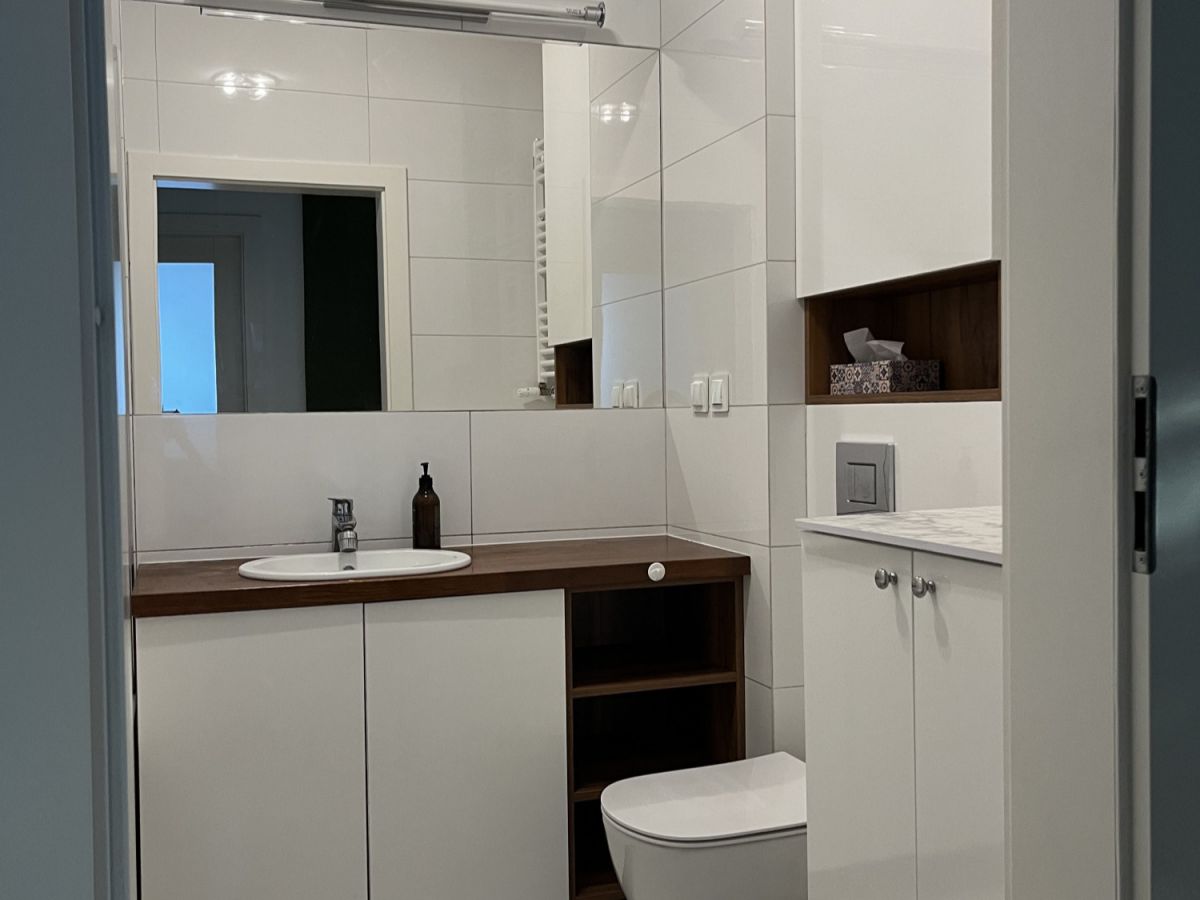 Przestronny pokój dzienny połączony z aneksem kuchennym. Przytulna sypialnia z wygodnym dwuosobowym łożem i duża szafa w zabudowie. Druga duża sypialnia lub pokój do pracy - do własnej aranżacji. Na podłodze panele winylowe. Łazienka z wanną. Jasny i duży przedpokój z pojemną szafą.
