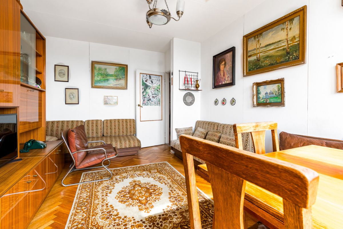 The apartment is well-laid-out with windows facing two directions, ensuring excellent natural light and ventilation. It features a bright, separate kitchen. While the apartment requires renovation, it is livable in its current state. A key advantage is the cooperative’s approval to remove all partition walls, allowing the new owner to fully customize the space to their preferences. The unit also includes a balcony, perfect for morning coffee or relaxing outdoors.
