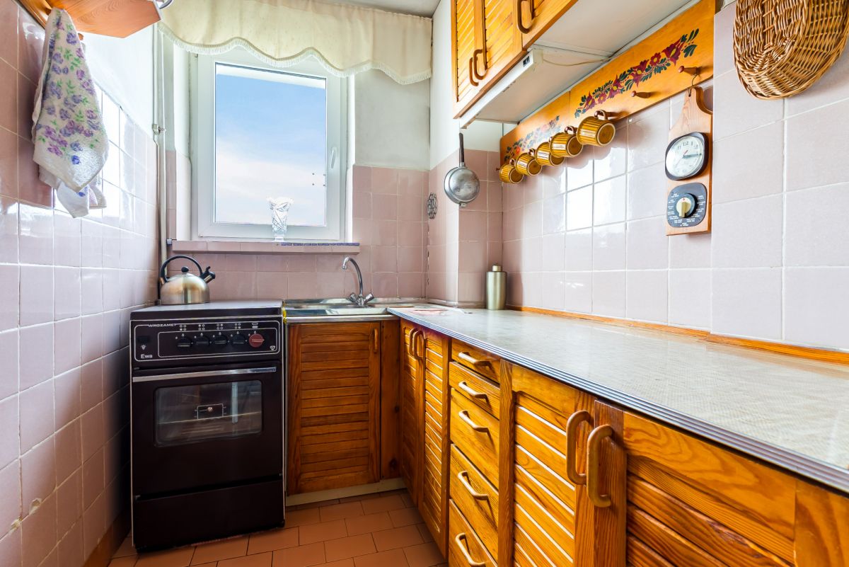Lokal jest rozkładowy, z oknami wychodzącymi na dwie strony świata, co gwarantuje dobre doświetlenie i naturalną wentylację. Kuchnia jest widna i oddzielna. Mieszkanie wymaga remontu, jednak w obecnym stanie nadaje się do zamieszkania. Najważniejszym atutem jest zgoda i możliwość usunięcia wszystkich ścian działowych, co pozwala nowemu właścicielowi na całkowitą aranżację przestrzeni według własnych potrzeb i gustu. Do mieszkania przynależy również balkon, idealny na poranną kawę czy odpoczynek na świeżym powietrzu.