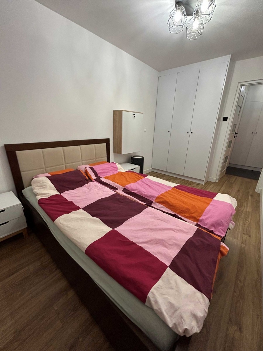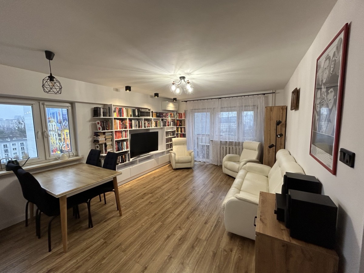 Mieszkanie usytuowane jest na ósmym z dziesięciu pięter ponad konarami drzew z pięknym widokiem na biznesową cześć Warszawy zlokalizowaną w pobliżu Ronda Daszyńskiego. Składa się z salonu z aneksem kuchennym z oknem, 2 sypialni, łazienki z prysznicem i wc oraz przedpokoju, po generalnym remoncie w 2020 podczas którego zamontowano klimatyzację (okazjonalnie używana, 2-3 tygodni w roku) Piony w mieszkaniu są wymienione, elektryka miedziana.
