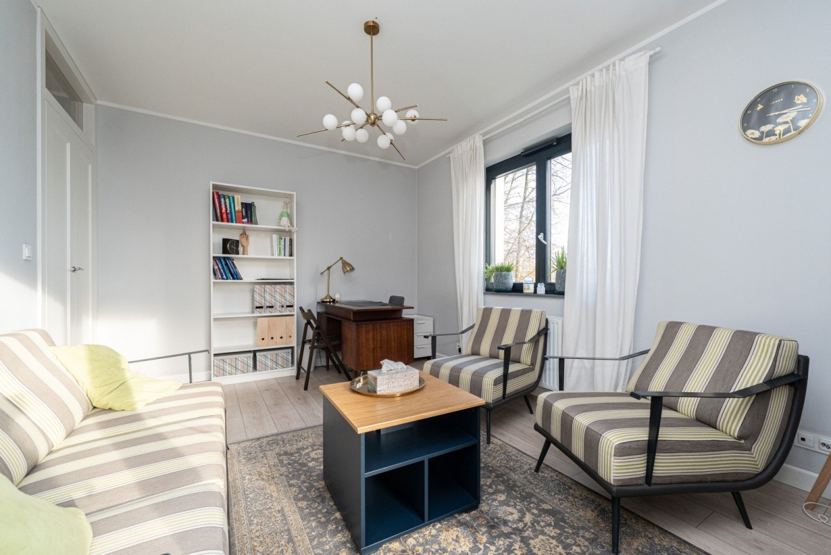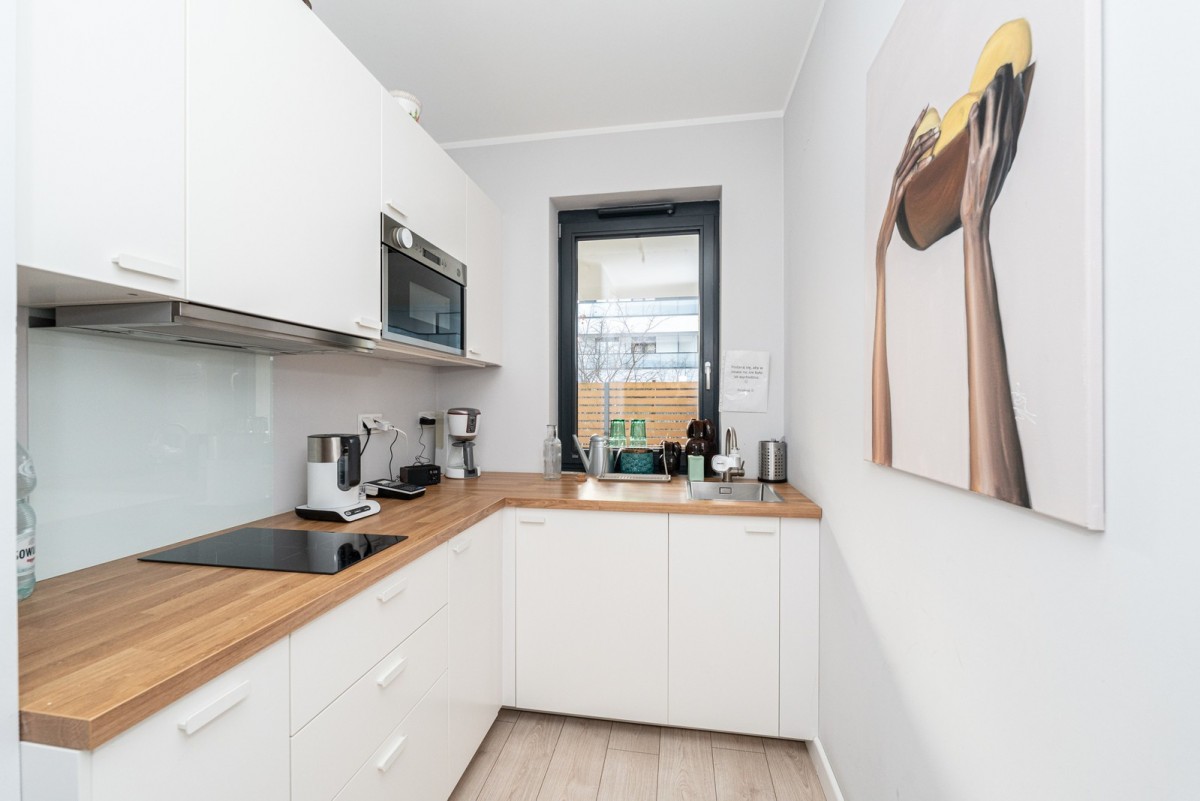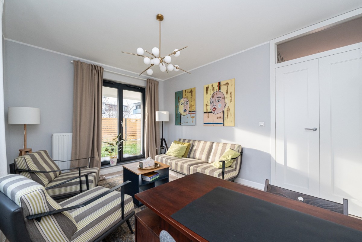 Mieszkanie składa się z przestronnego pokoju dziennego, oddzielnej, widnej kuchni, łazienki oraz przedpokoju. Dużym atutem jest ogród, który stanowi doskonałe miejsce do wypoczynku lub zieloną przestrzeń dla klientów, jeśli mieszkanie będzie wykorzystywane pod działalność.