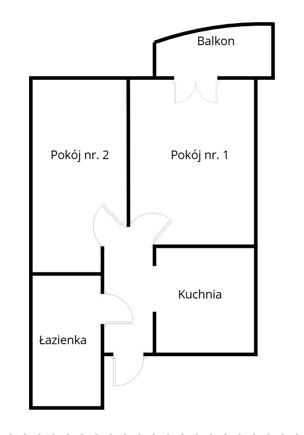 Układ: 2 pokoje, kuchnia, łazienka