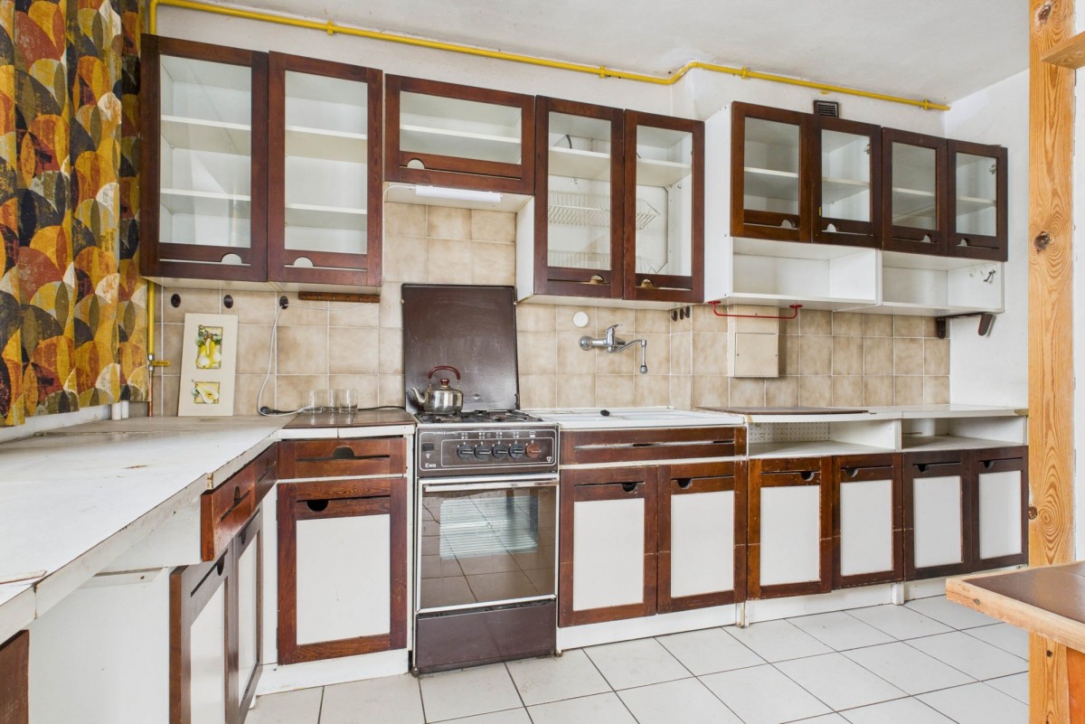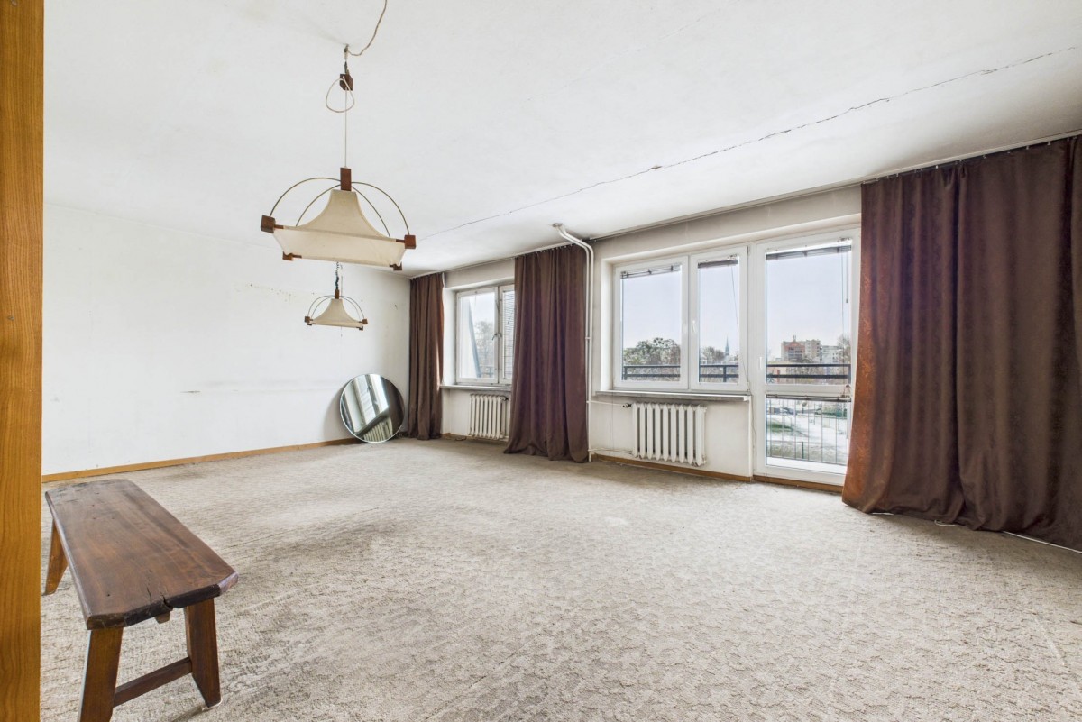 Przestronne mieszkanie o powierzchni 95 m² na trzecim piętrze budynku bez windy, zlokalizowane przy ul. Syreny 35A w Warszawie. Składa się z jasnego i dużego salonu (28 m²) otwartego na kuchnię (10m² + spiżarnia) oraz trzech sypialni (11m², 14m², 9m²), łazienki, oddzielnej toalety, 2 loggie po 8m². Mieszkanie wymaga generalnego remontu, co daje wyjątkową szansę na zaprojektowanie przestrzeni według własnych potrzeb i stylu.