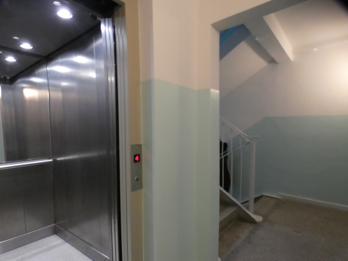 Lokal znajduje się na czwartym piętrze dwunastopiętrowego bu budynku z 1978 r .