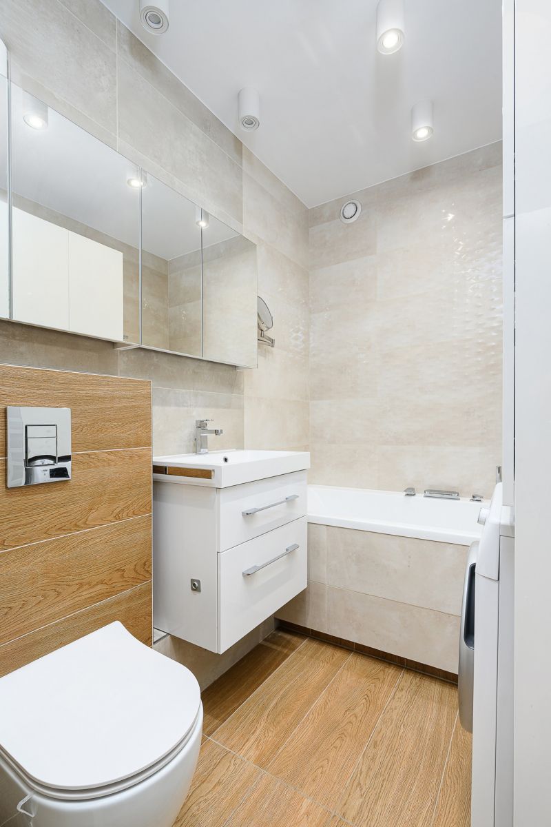 ~ funkcjonalna łazienka z wanną oraz miejscem na pralkę,