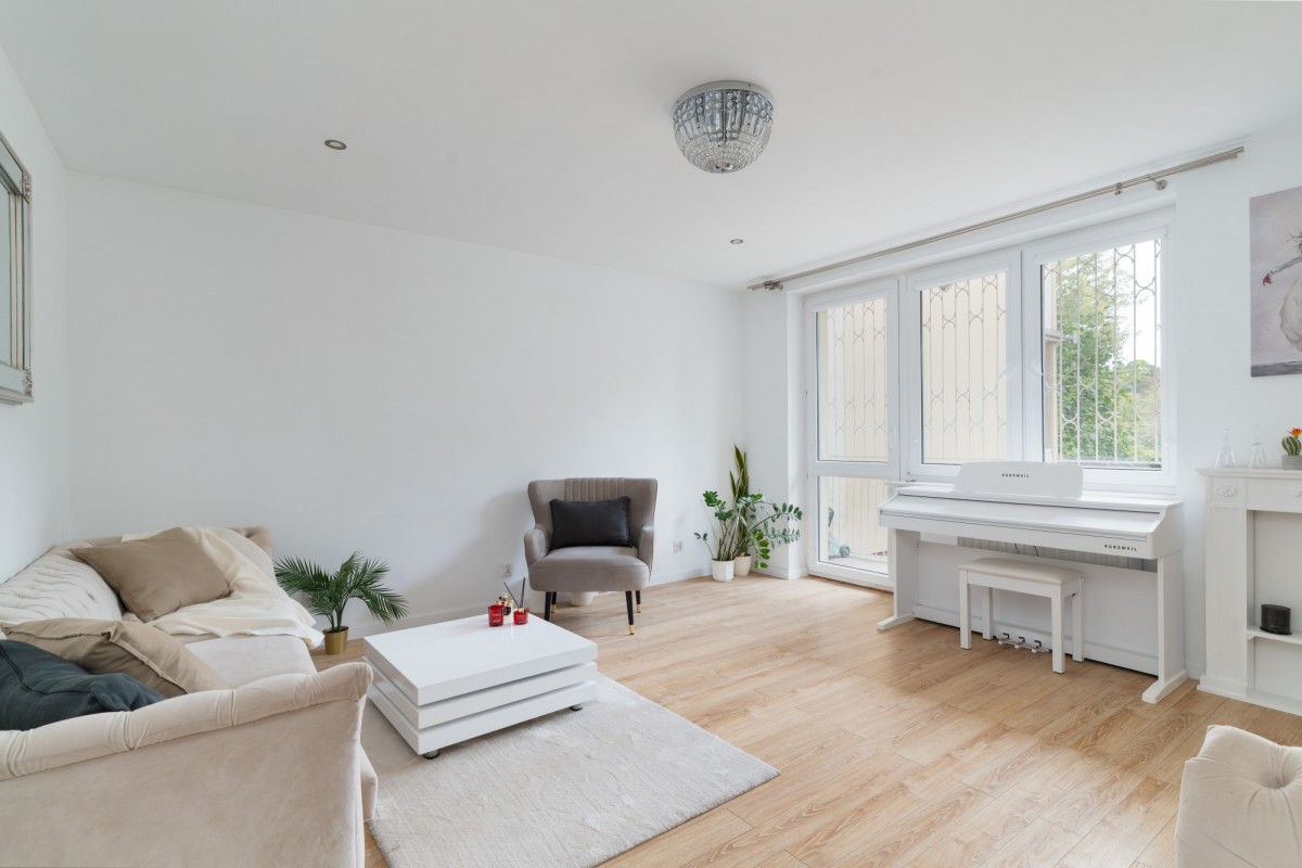 Mieszkanie w 2021 roku przeszło generalny remont, łącznie z wymianą instalacji. Jest urządzone w jasnych, neutralnych barwach. Pokoje są ustawne, z łatwością możemy je zaaranżować pod własne potrzeby. Pomiędzy salonem i gabinetem znajdują się drzwi przesuwne, które można łatwo zabudować tworząc niezależny, 4 pokój. Na podłodze położony jest gres oraz panele w kolorze naturalnego dębu. W kuchni znajduje się zabudowa stolarska z frontami z białego mdf w wysokim połysku. W łazienkach znajdziemy gres imitujący marmur Carrara ze złotymi elementami. Ogromnym atutem nieruchomości jest jej nasłonecznienie - okna wychodzą na 3 strony, z czego salon i ogródek na zachód, a sypialnie na wschód. Budynek został oddany do użytku w 1961 roku, jest wykonany z cegły.