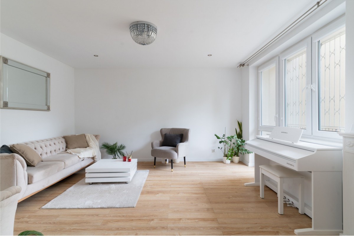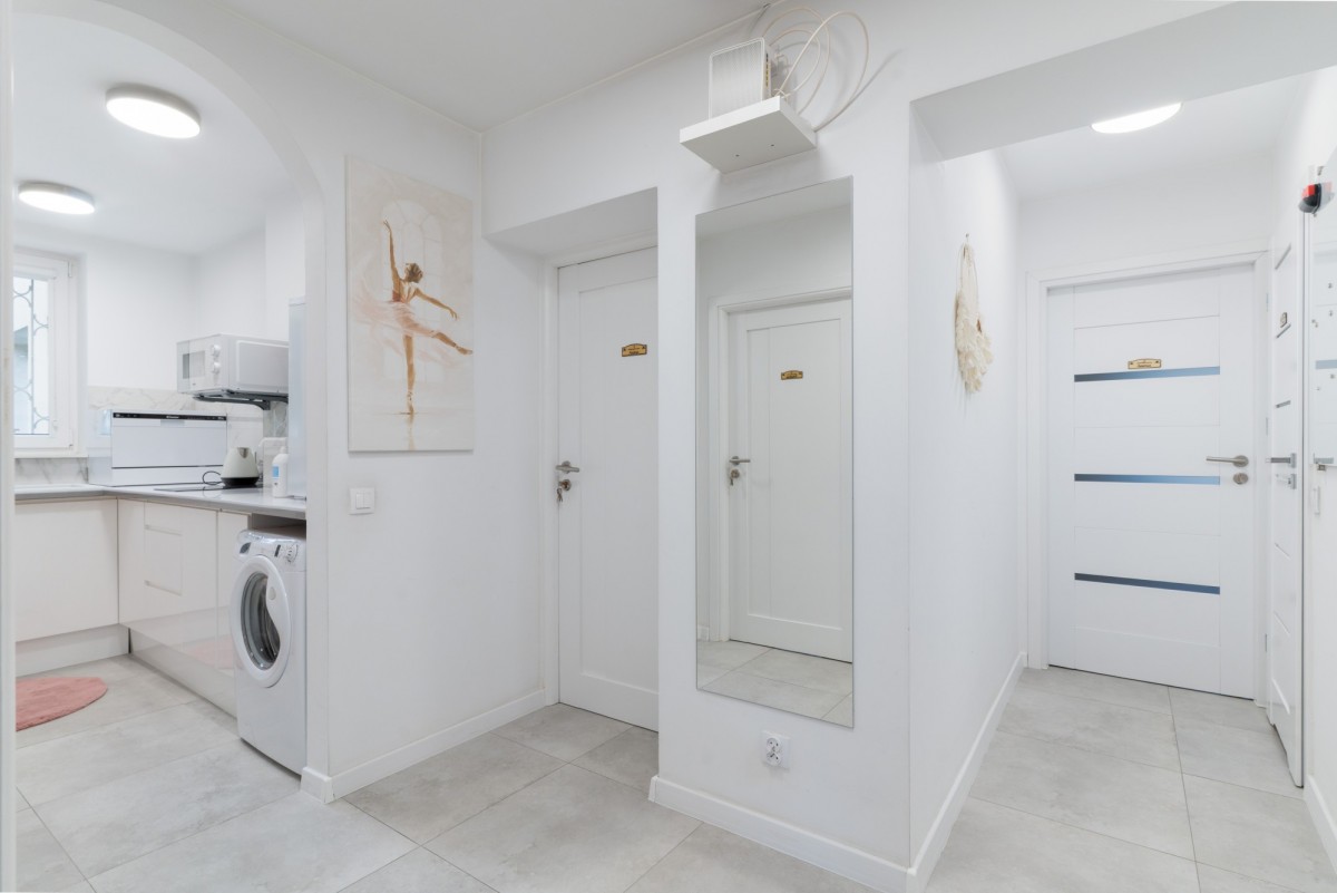Mieszkanie w 2021 roku przeszło generalny remont, łącznie z wymianą instalacji. Jest urządzone w jasnych, neutralnych barwach. Pokoje są ustawne, z łatwością możemy je zaaranżować pod własne potrzeby. Pomiędzy salonem i gabinetem znajdują się drzwi przesuwne, które można łatwo zabudować tworząc niezależny, 4 pokój. Na podłodze położony jest gres oraz panele w kolorze naturalnego dębu. W kuchni znajduje się zabudowa stolarska z frontami z białego mdf w wysokim połysku. W łazienkach znajdziemy gres imitujący marmur Carrara ze złotymi elementami. Ogromnym atutem nieruchomości jest jej nasłonecznienie - okna wychodzą na 3 strony, z czego salon i ogródek na zachód, a sypialnie na wschód. Budynek został oddany do użytku w 1961 roku, jest wykonany z cegły.
