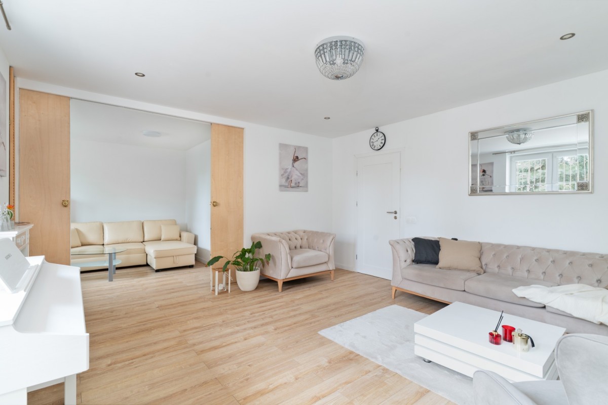 - gabinetu oddzielonego od salonu przesuwnymi, dwuskrzydłowymi drzwiami