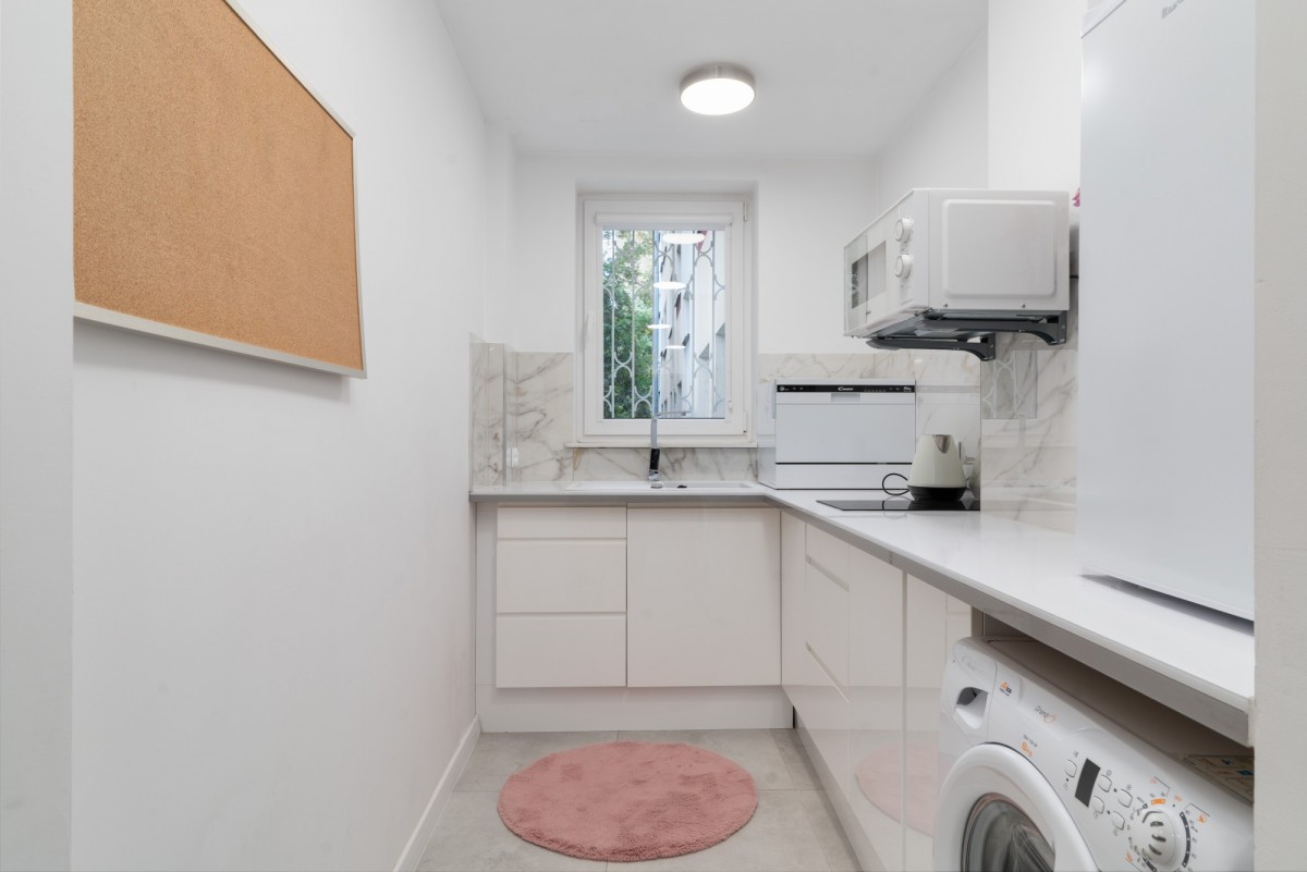Nieruchomość znajduje się na Woli, jednej z najprężniej rozwijających się dzielnic Warszawy, na osiedlu Młynów, w cichej i spokojnej okolicy. Stacja metra Młynów znajduje się 10 min spacerem od mieszkania, przystanki tramwajowe i autobusowe zaledwie 5 min pieszo. Szkoła podstawowa położona jest 3 min pieszo od mieszkania. W okolicy znajduje się mnóstwo lokali handlowych i usługowych, restauracje i kawiarnie.