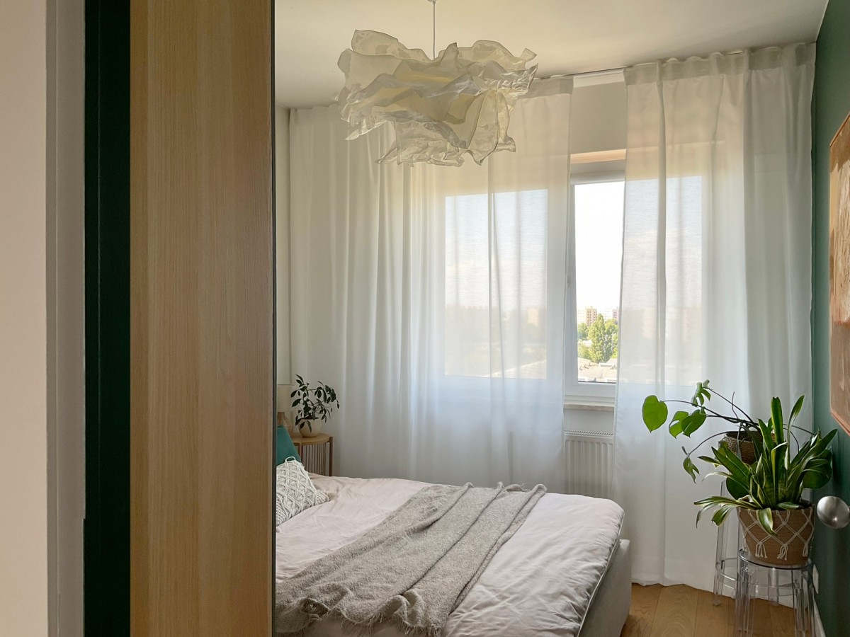 3-pokojowe mieszkanie wykończone materiałami premium z ładnym widokiem na Warszawę.