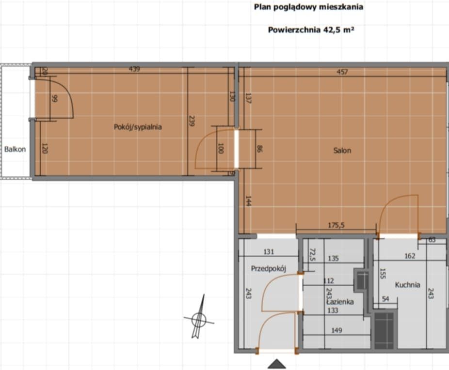 - Powierzchnia: 42.5 m2
