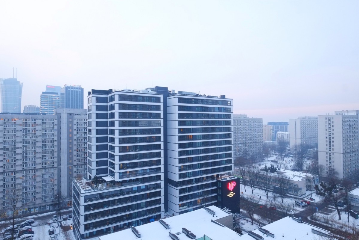 widok na panoramę miasta - XIV piętro zapewnia także ciszę