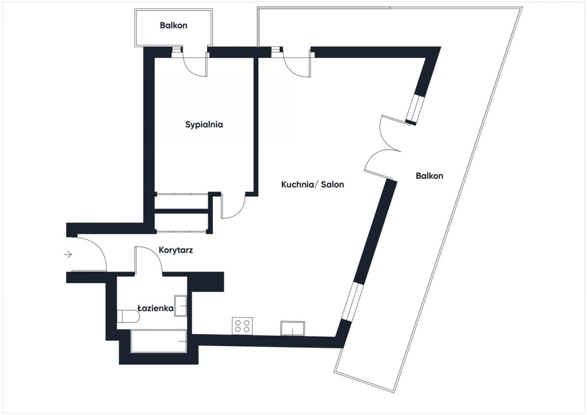 Wyraźny podział funkcjonalny na strefę dzienną i prywatną.