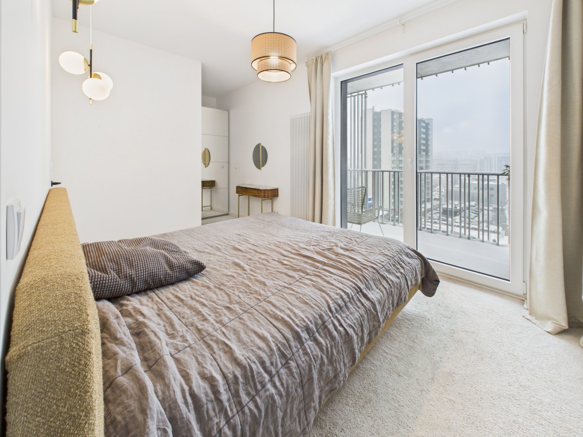 Mieszkanie jest w pełni wykończone i gotowe do zamieszkania. Projekt wnętrza łączy nowoczesną estetykę z wysoką funkcjonalnością, zapewniając komfort zarówno do codziennego życia, jak i pracy zdalnej wykonany według projektu KAZA Concept.