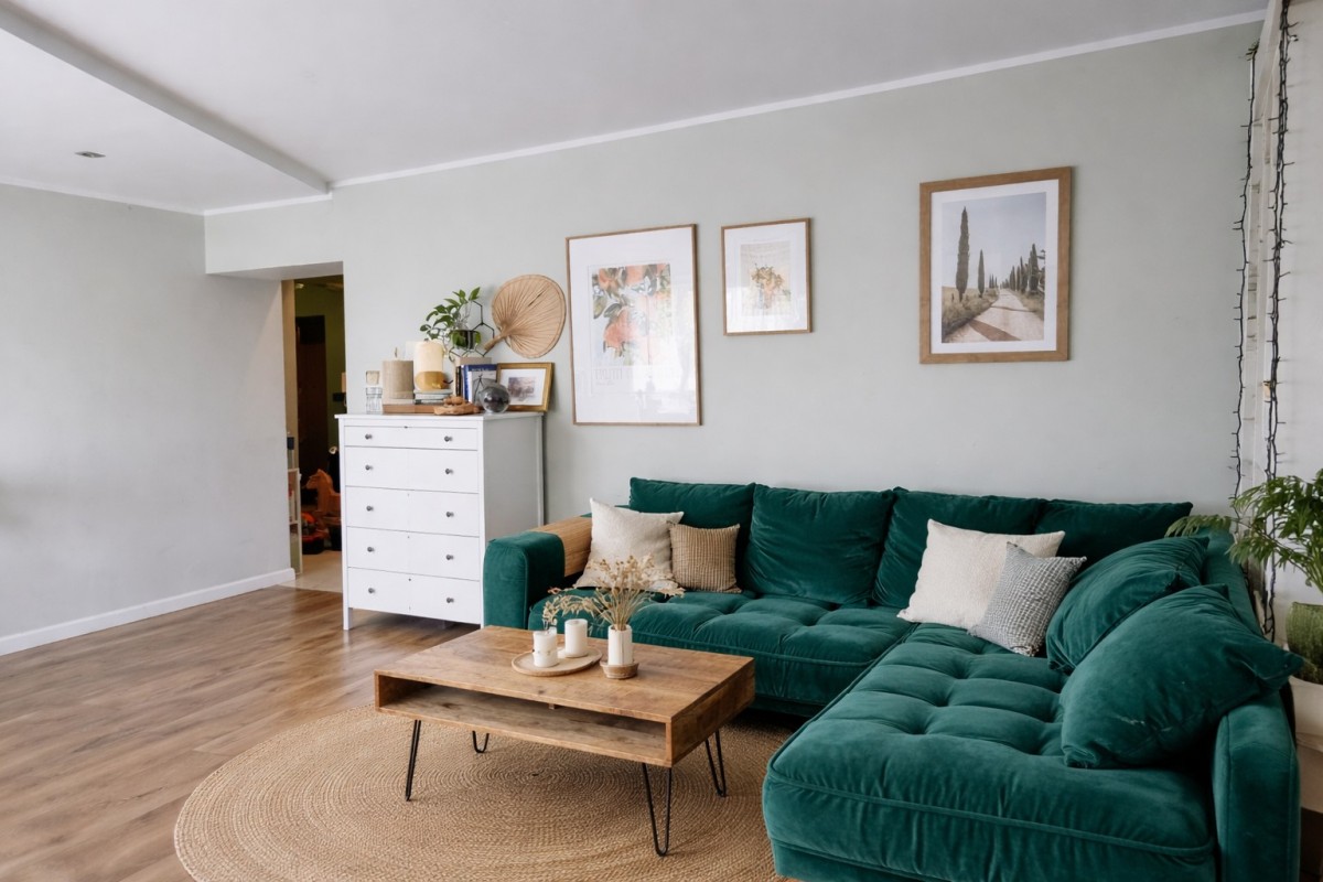 Wnętrze utrzymane w nowoczesnym stylu. Pokoje nie są umeblowane, co daje pełną swobodę aranżacji według własnego gustu. Jednocześnie kuchnia i łazienka są w 100% wyposażone — gotowe do użytkowania od pierwszego dnia. Kuchnia posiada sprzęt AGD: lodówkę, zmywarkę, piekarnik oraz pralkę z funkcją suszenia.