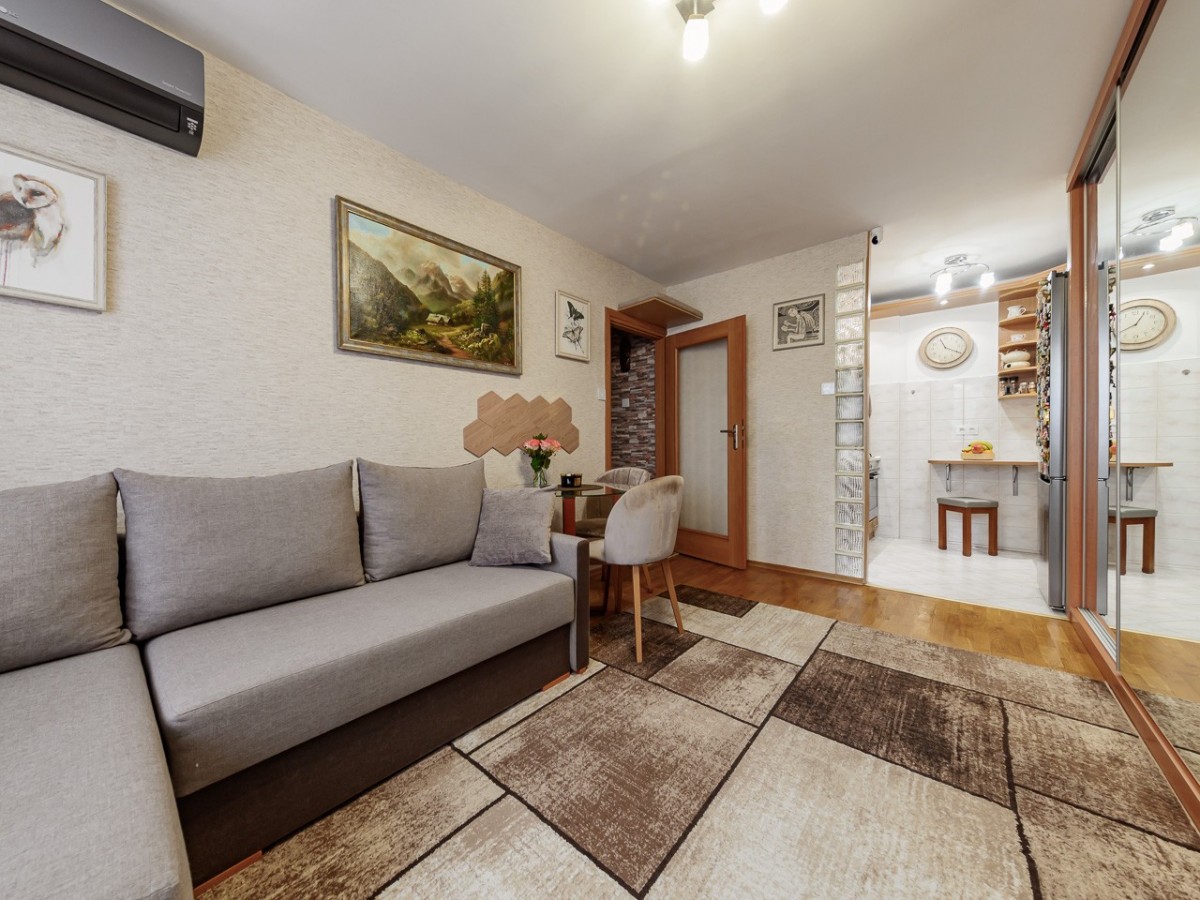 Jednym z atutów lokalu jest pożądana, wschodnia ekspozycja okien, zapewniająca dostęp do porannego światła przy jednoczesnym ograniczeniu nagrzewania wnętrz w ciągu dnia. Mieszkanie jest bardzo ciepłe i komfortowe również zimą - temperatura utrzymuje się na poziomie około 22-23°C, co w praktyce minimalizuje potrzebę korzystania z grzejników w sezonie grzewczym. Dodatkowym udogodnieniem jest zainstalowana w lokalu wysokiej klasy klimatyzacja, stanowiąca opcjonalne wsparcie komfortu w skrajnych warunkach pogodowych