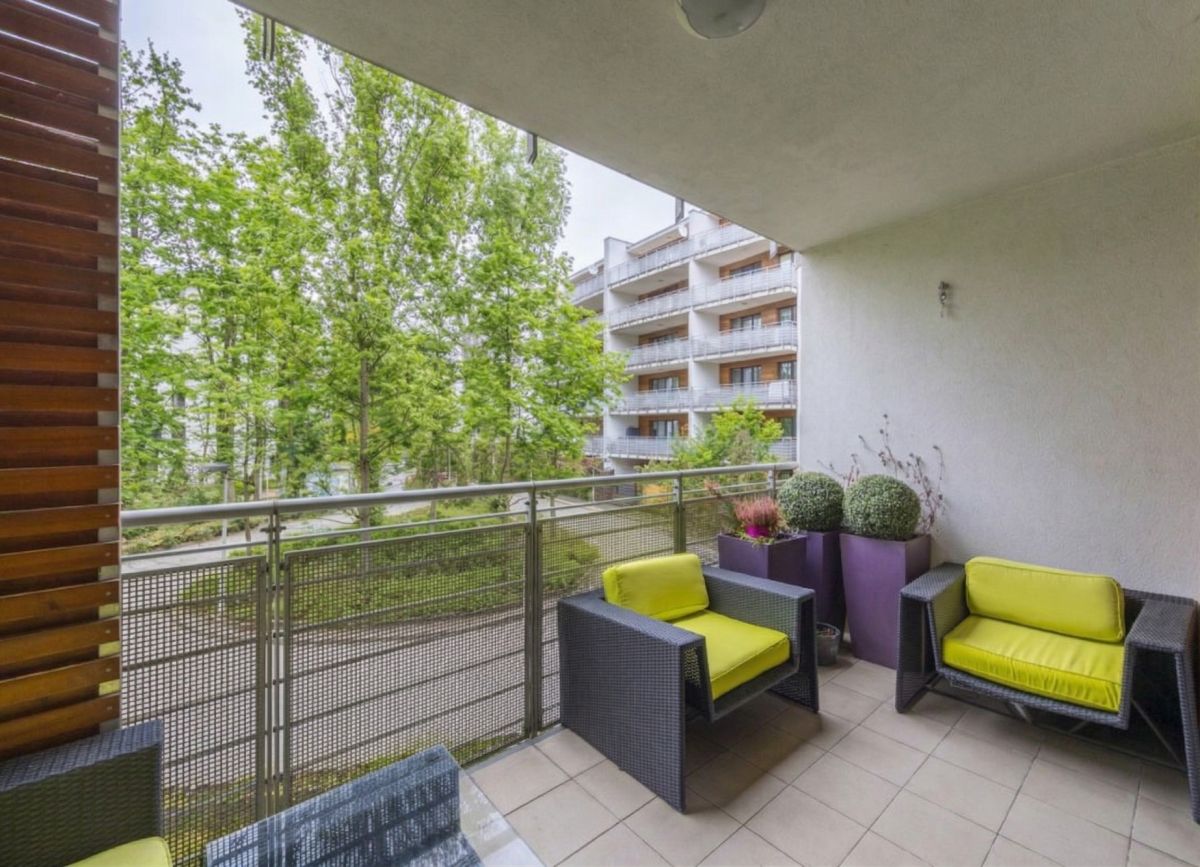 Osiedle strzeżone | Widok na ciche i zielone patio | Umeblowane i sprzedawane z całym wyposażeniem | 2 miejsca w garażu podziemnym