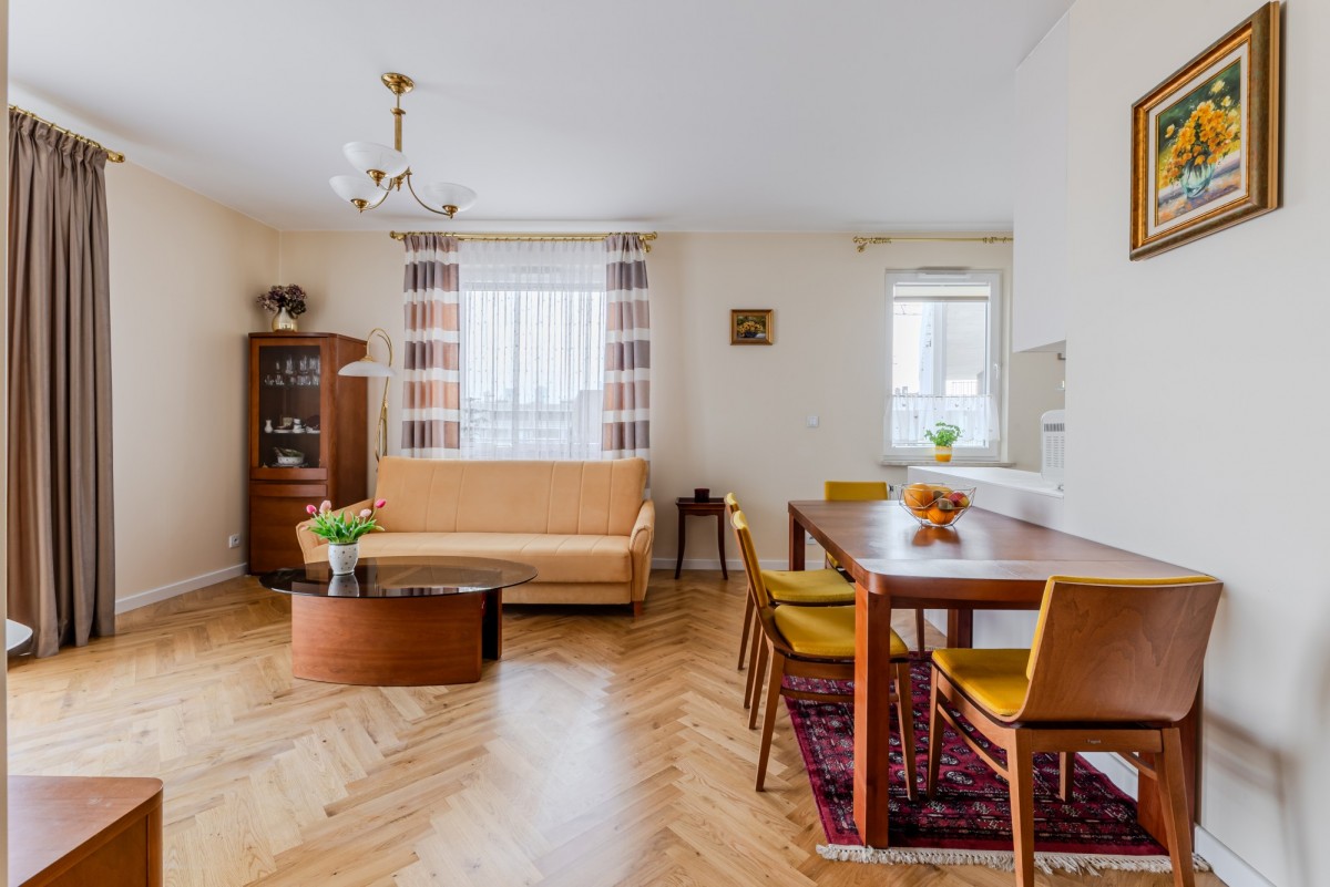 - przestronny salon z widnym aneksem kuchennym