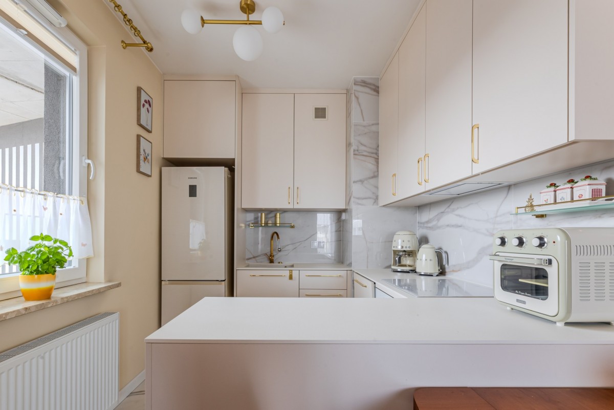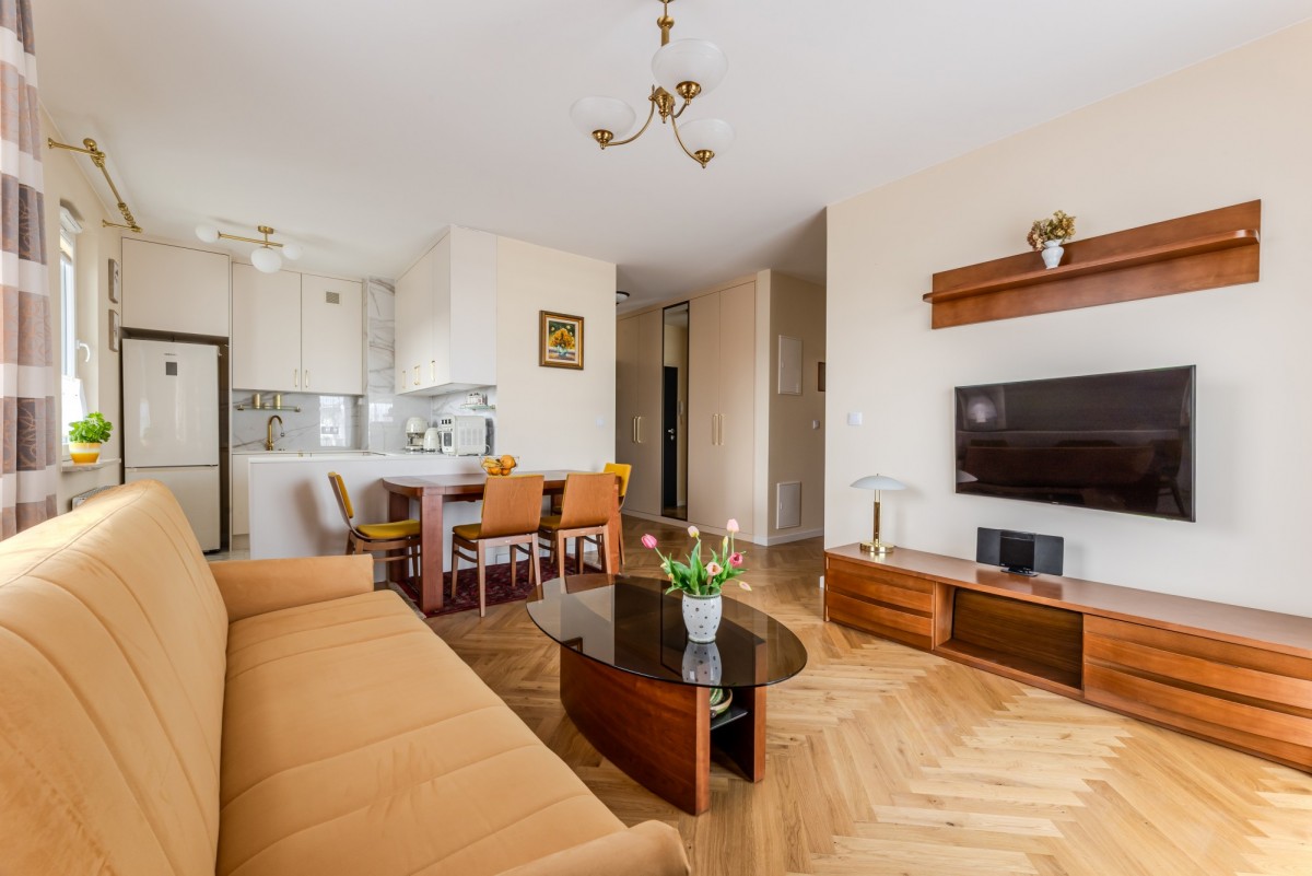 Lokal został kompleksowo zaprojektowany i wykończony przez uznaną pracownię architektoniczną, z myślą o komforcie użytkowania oraz praktycznych rozwiązaniach. Starannie zaplanowane zabudowy stolarskie oraz liczne szafy oferują dużą ilość miejsca do przechowywania. Funkcjonalna, nowoczesna kuchnia została zaprojektowana tak, aby codzienne przygotowywanie posiłków było wygodne i przyjemne.