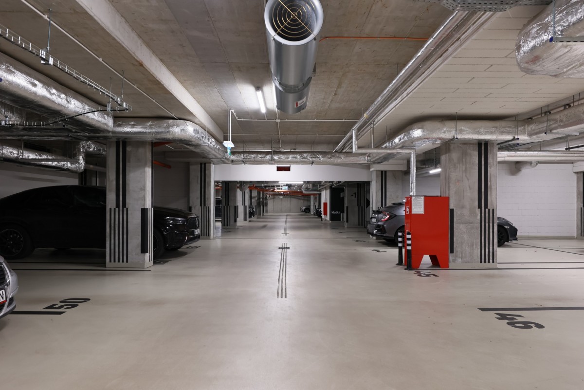 Do mieszkania przynależy miejsce postojowe w garażu podziemnym (dodatkowo płatne 50 000 zł) oraz przestronna komórka lokatorska (dodatkowo płatna 30 000 zł).