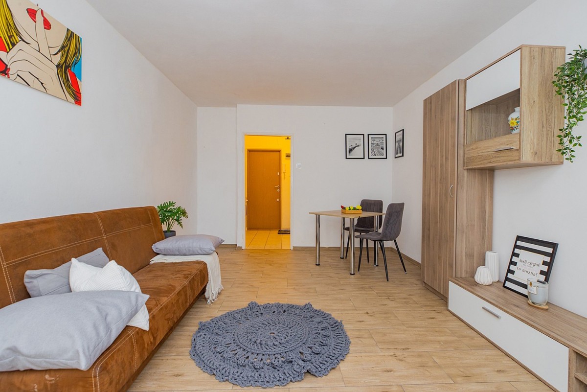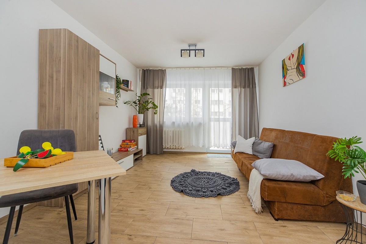 Lokal składa się z jasnego pokoju z balkonem od strony wschodniej, aneksu kuchennego oraz łazienki. Mieszkanie jest ciepłe, słoneczne i gotowe do zamieszkania - idealne dla studenta, singla lub jako pierwsze własne „M”.