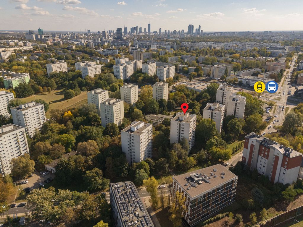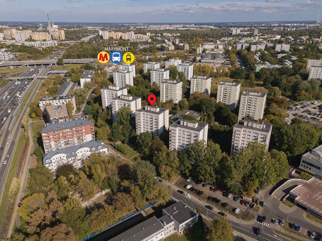 OKOLICA: Z uwagi na fakt, iż budynek znajduje się w pewnym oddaleniu od ul. Broniewskiego, miejsce to jest ciche i nie docierają do niego większe hałasy. W pobliżu znaleźć można liczne sklepy i punkty usługowe. Bardzo dobry dostęp do komunikacji miejskiej (metro Marymont, autobus, tramwaj).