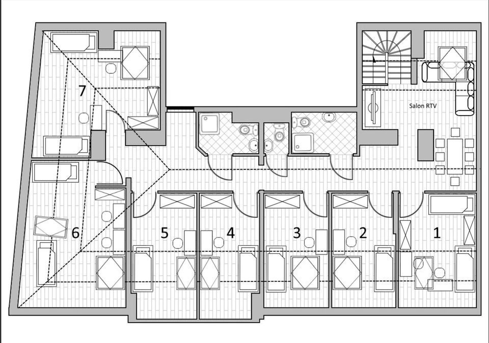 Pokoje mieszczą od 1 do 3 najemców jednocześnie — łącznie nieruchomość swobodnie pomieści nawet 16 najemców jednocześnie.