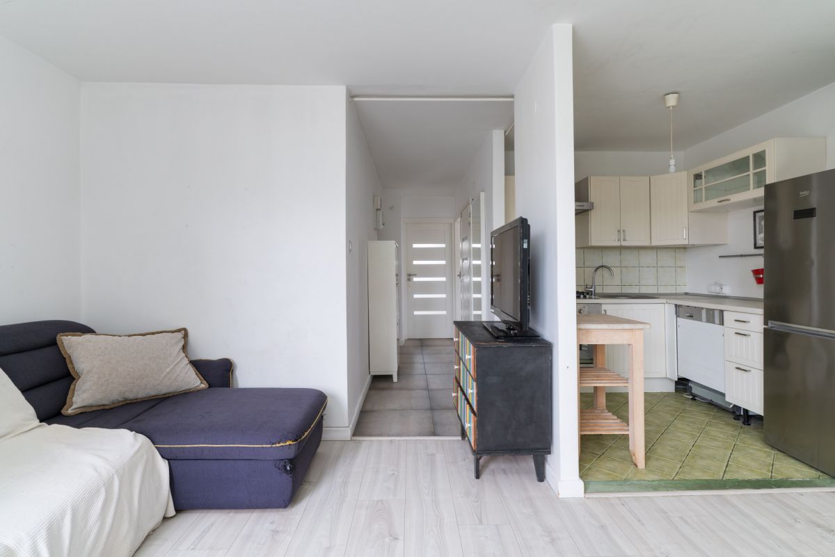 - Przestronny salon z wyjściem na balkon, połączony z półotwartą kuchnią