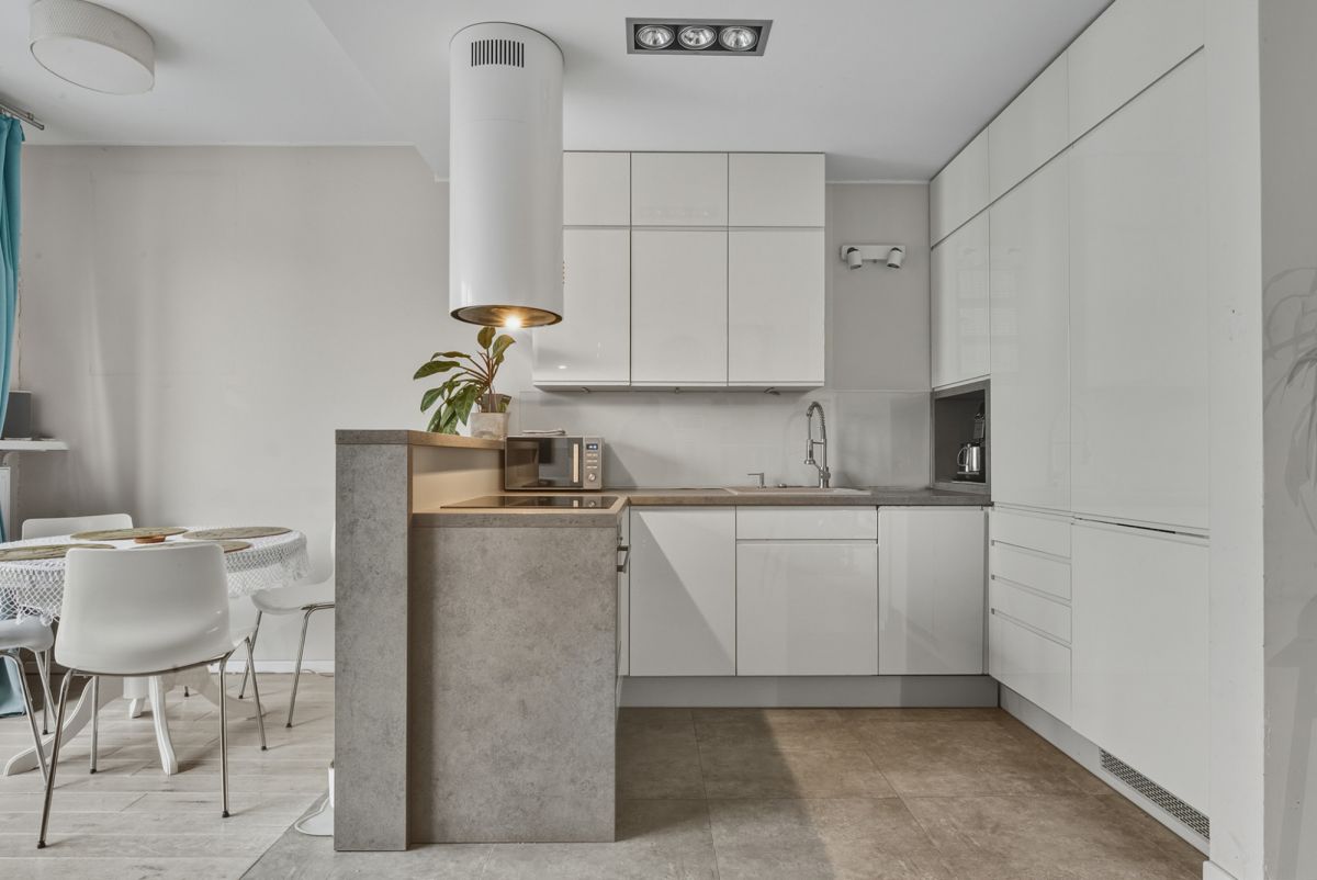 Kuchnia w pełni umeblowana i wyposażona w sprzęt AGD.
