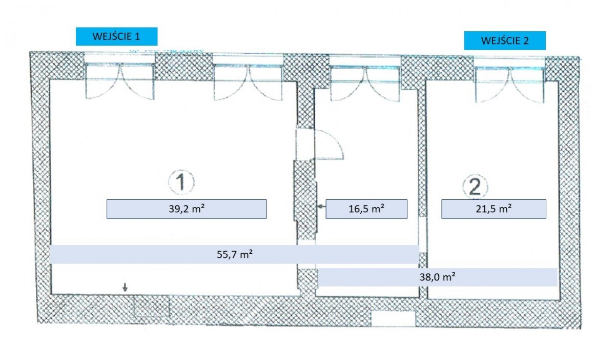 Dwa niezależne wejścia pozwalają na swobodny podział przestrzeni lub wydzielenie osobnych stref dla klientów i pracowników.