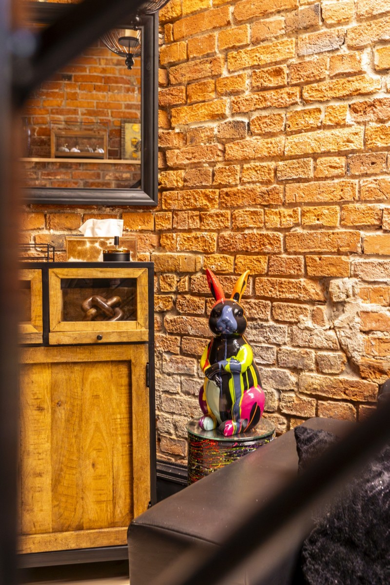 Poziom dolny:Oryginalna cegła na ścianach, wypiaskowana i zaimpregnowana, drewniane deski na podłogach (w strefach łazienkowych, WC, kuchni i częściowo w korytarzu - terakota/gres).