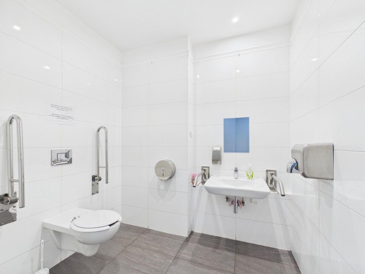 Niewątpliwym atutem lokalu jest również jego usytuowanie w budynku, wokół którego znajdują się liczne sklepy, restauracje, punkty usługowe, a przede wszystkim ciągi komunikacyjne w postaci linii autobusowych, tramwajowych i metra.