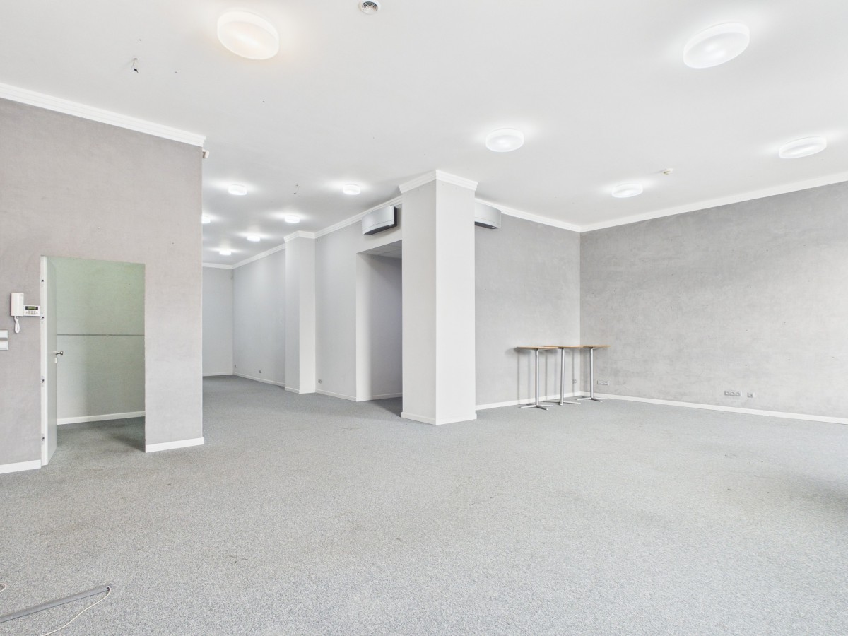 Lokal o powierzchni 110 m2 składa się z powierzchni biurowych przygotowanych do własnej aranżacji, dwóch toalet, kuchni. Bezpośrednio do poziomu lokalu dojeżdża winda.