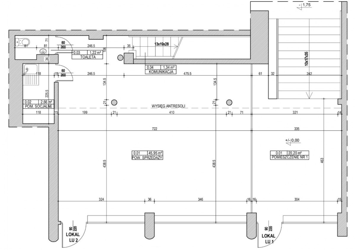 Lokal LU-1 (Parter z Witryną i Piwnica) - Powierzchnia 181,66 m²: