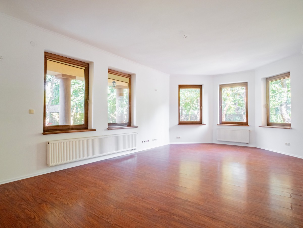 - Reprezentacyjna, jasna sala z dużymi oknami, zalana naturalnym światłem - idealna na recepcję, showroom lub otwartą przestrzeń biurową (35 m²)