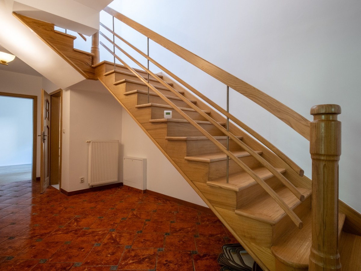 (na które prowadzą solidne, eleganckie, drewniane schody)