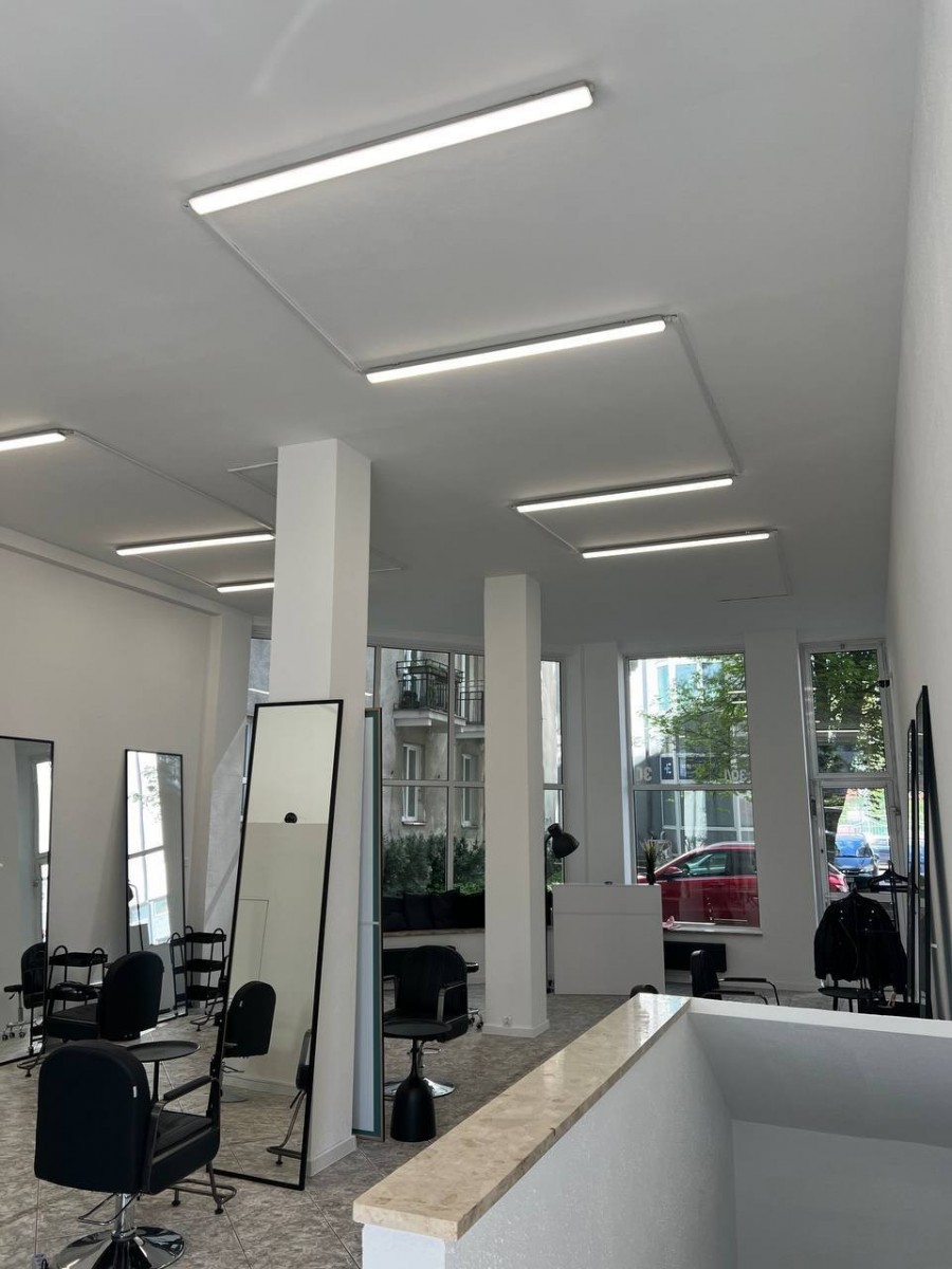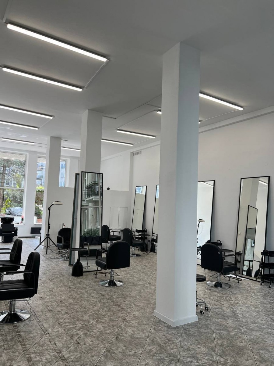 Nowoczesny, stylowy design. Przestrzeń jest podzielona na strefy, zainstalowano wysokiej jakości oświetlenie - światło dzienne + ciepłe oświetlenie według stref. W pełni wyposażony dla sfery urody.