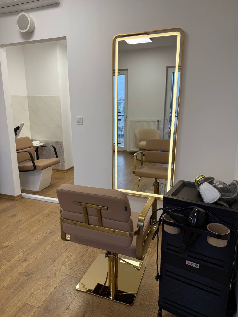 • 3 w pełni wyposażone stanowiska pracy dla fryzjerów (fryzjerzy, koloryści, specjaliści od keratyny)