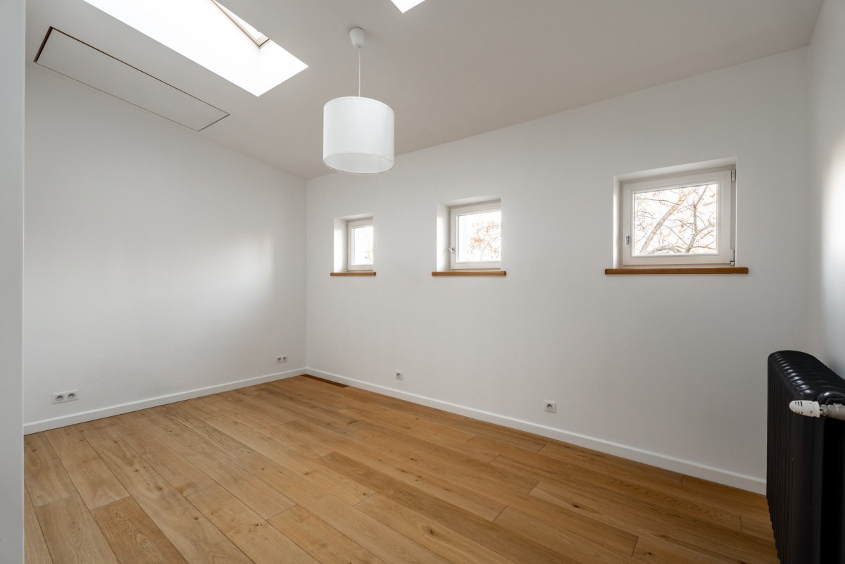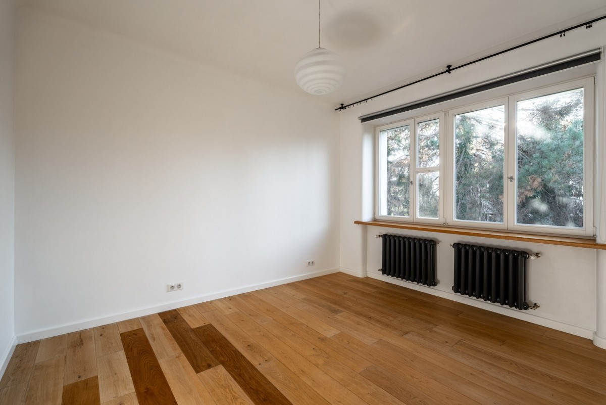 Dom z lat 30-tych po generalnym remoncie, podczas którego zachowano jego urok oraz pierwotny kształt. Drewniane podłogi, okna oraz drzwi nadają wnętrzom elegancji i charakteru. Przestronne, jasne pomieszczenia, zwłaszcza pokoje od strony południowej, zapewniają piękny widok na zielony, zadbany ogród.