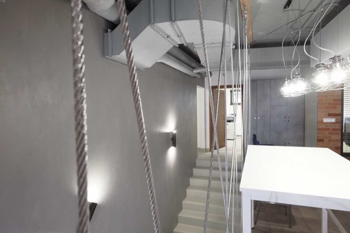 Nowocześnie wykończony i w pełni wyposażony lokal biurowy; recepcja oraz open space (razem 50 m2), open space #2 (50 m2), pokój (25 m2) z możliwością podziału na 2 mniejsze, i sala konferencyjna (20 m2). Dodatkowo serwerownia, kuchnia, WC. Możliwy przydział mocy do 40kW.