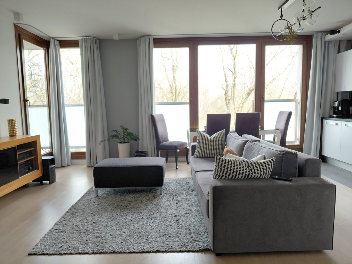 Kompleks jest oddzielony od Wisłostrady dużym pasem zieleni (pięknym parkiem), dzięki czemu do mieszkania nie dociera hałas .