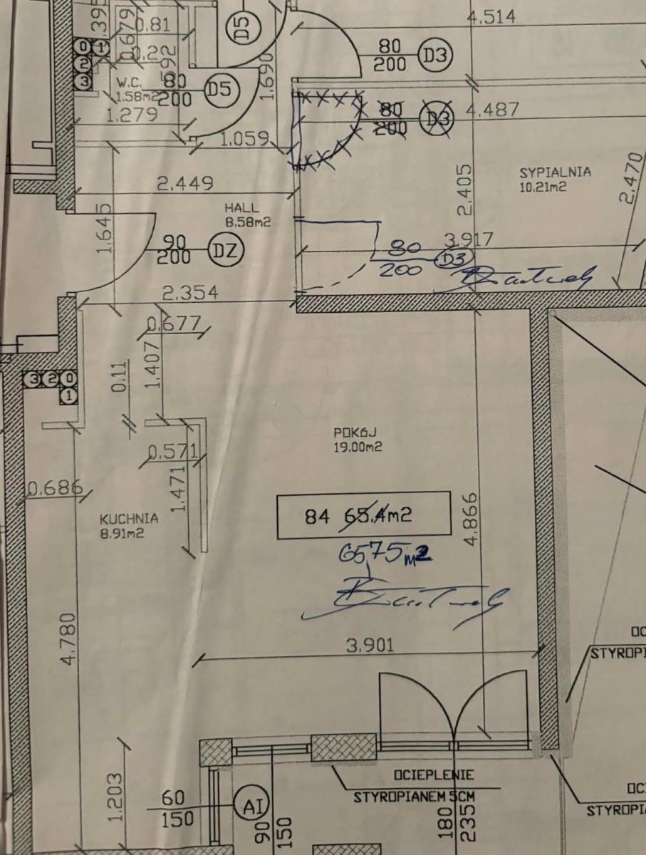 - powierzchnia: 64m.kw. (3 pokoje),