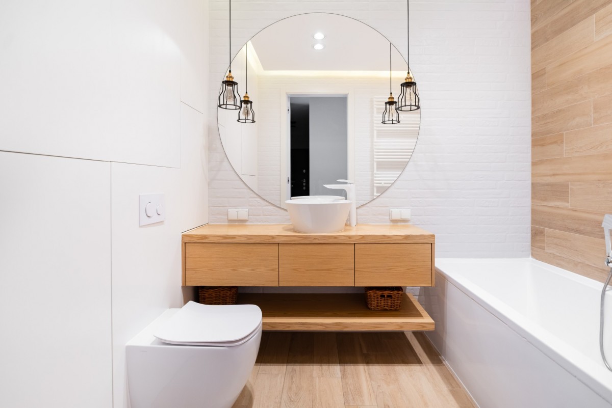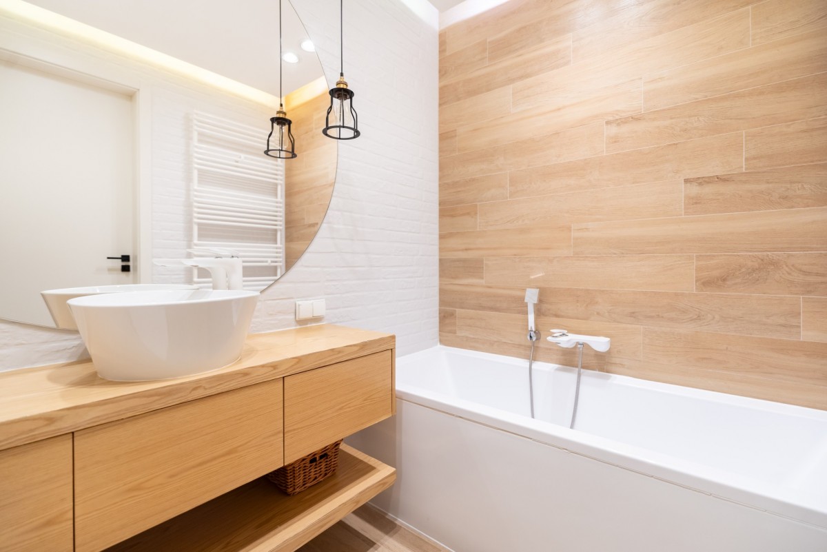 * Podgrzewana podłoga i podwieszany sufit w łazience.
