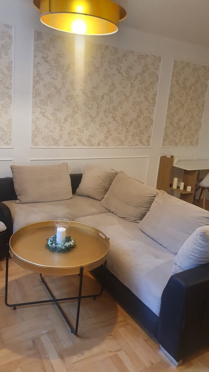 - duży 20-metrowy pokój, w którym została wydzielona część wypoczynkowa oraz sypialniana,
