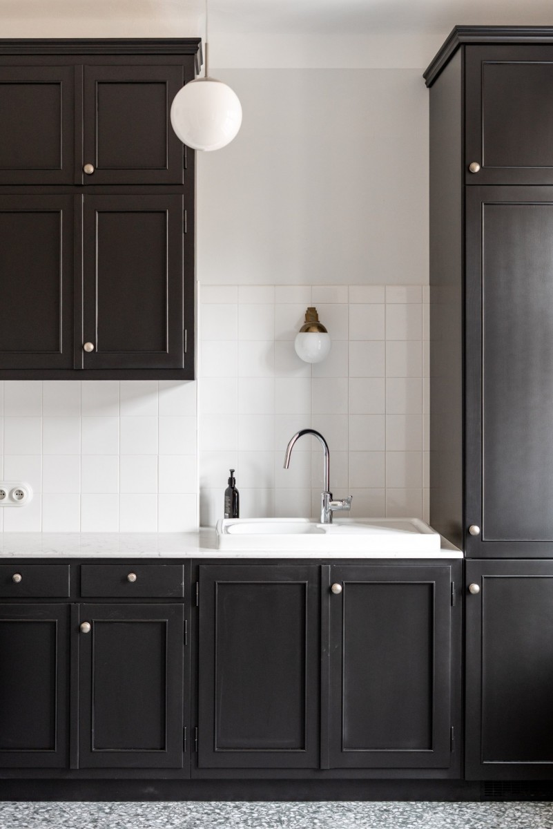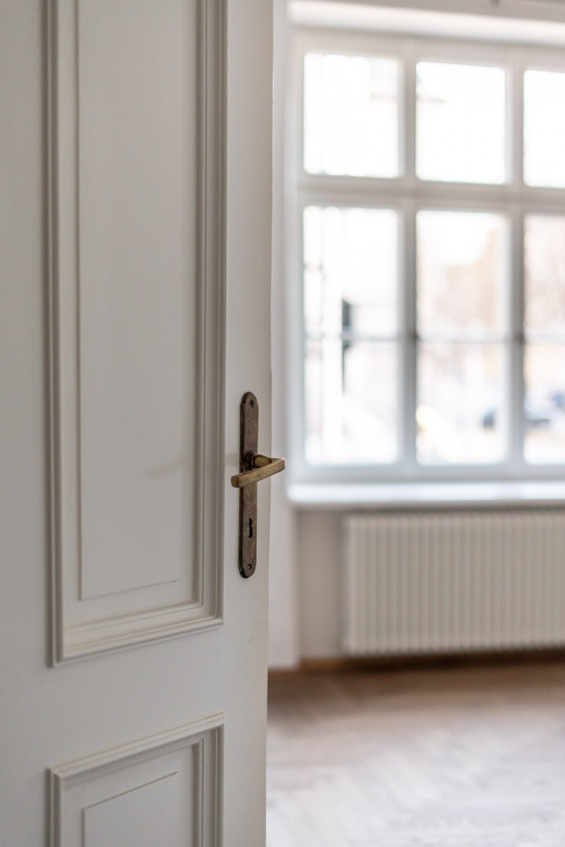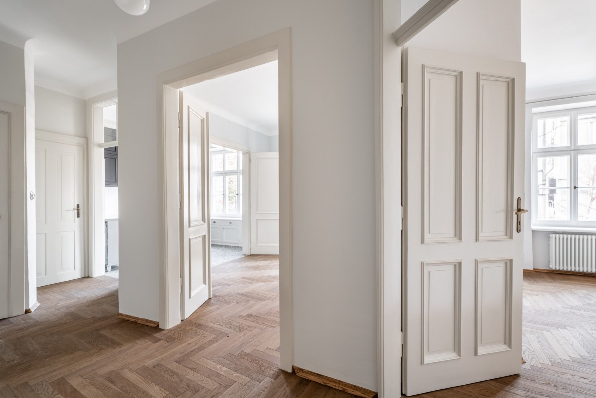 Mieszkanie zostało odrestaurowane z najwyższym szacunkiem do historycznego charakteru kamienicy, łącząc przedwojenną elegancję z nowoczesnymi rozwiązaniami.