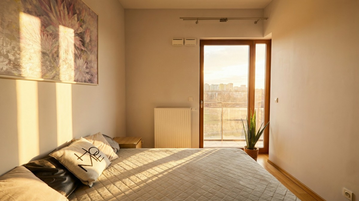 Przestronna, otwarta na salon jasna kuchnia ze sprzętem AGD: piekarnik, zmywarka, płyta indukcyjna. W salonie część jadalniana i wypoczynkowa - to idealna przestrzeń dzienna. Niesamowicie duży wygodny balkon z widokiem na centrum miasta i zamiast patrzenia okna w okna - uroczy staw i dużo powietrza! W kazdym oknie zamontowane są rolety antywłamaniowe, ktore chronią również przed słońcem.Wygodna łazienka z prysznicem. Wnętrza utrzymane konsekwentnie w jasnej kolorystyce. W hallu pojemna garderoba.
